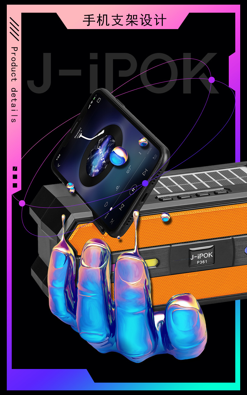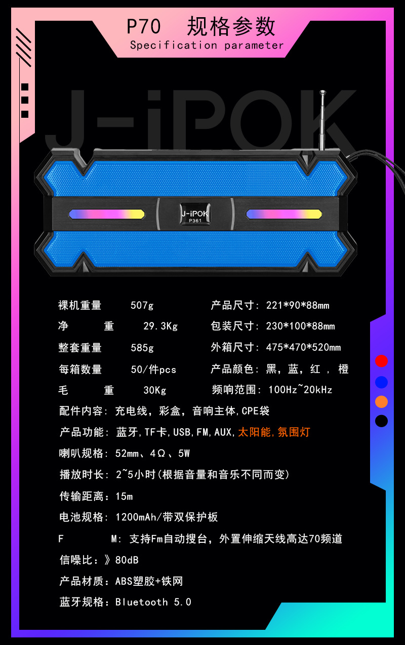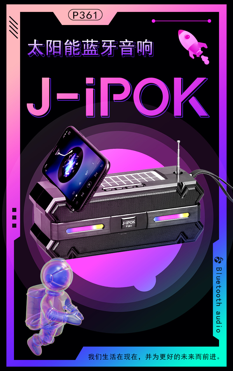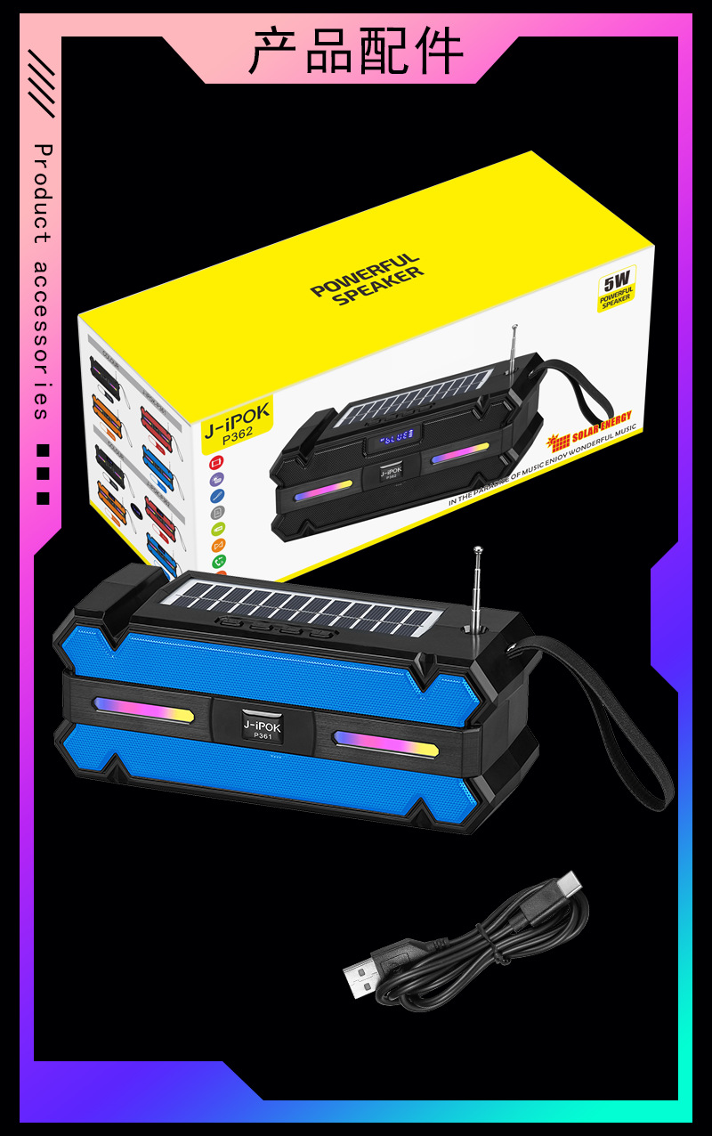 J-IPOK P361供应跨境蓝牙蓝牙音箱音响新款彩灯带太阳能板双喇叭