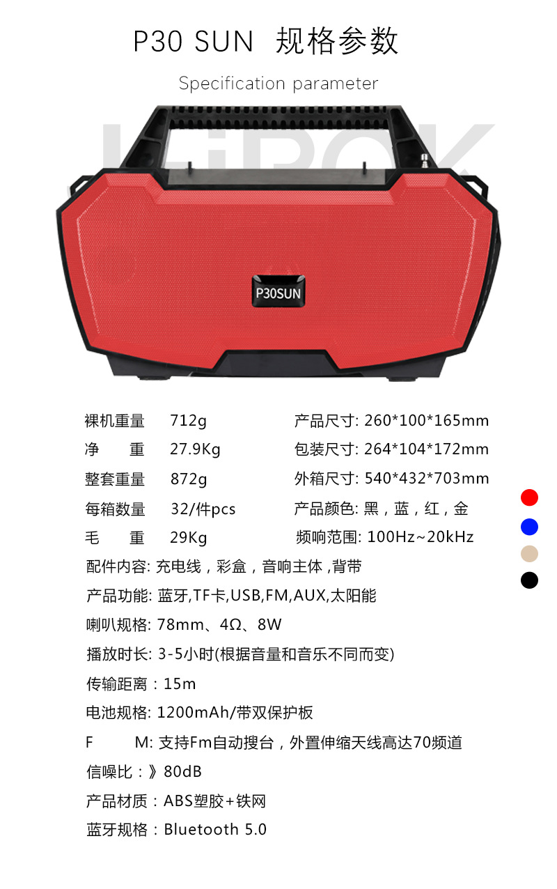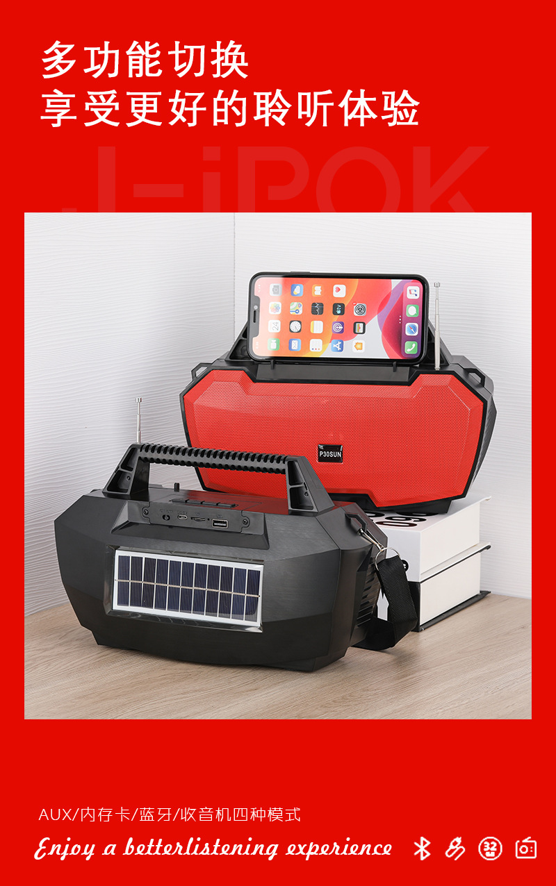 J-ipok P30SUN跨境蓝牙爆款带太阳能蓝牙音箱大功率无线蓝牙音响