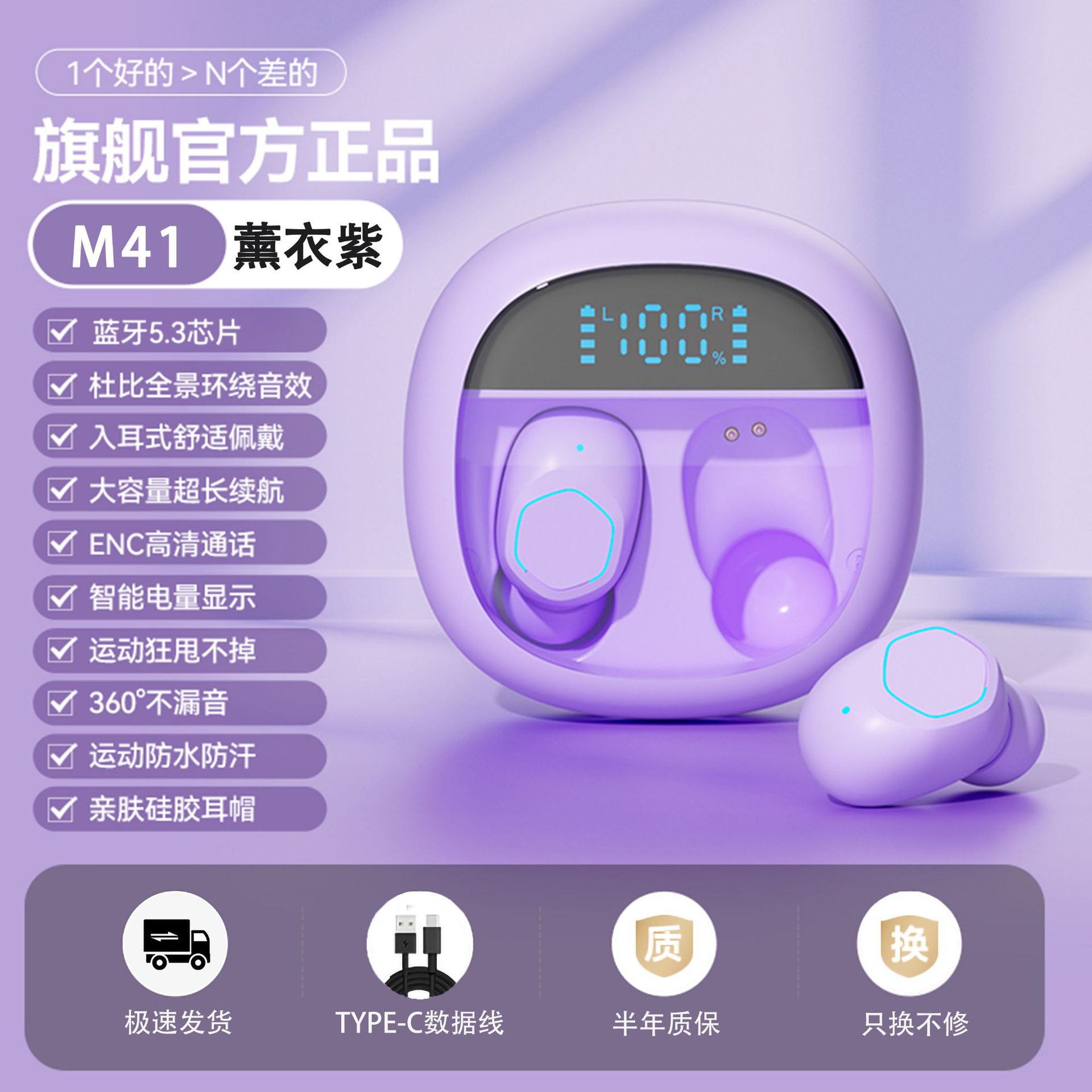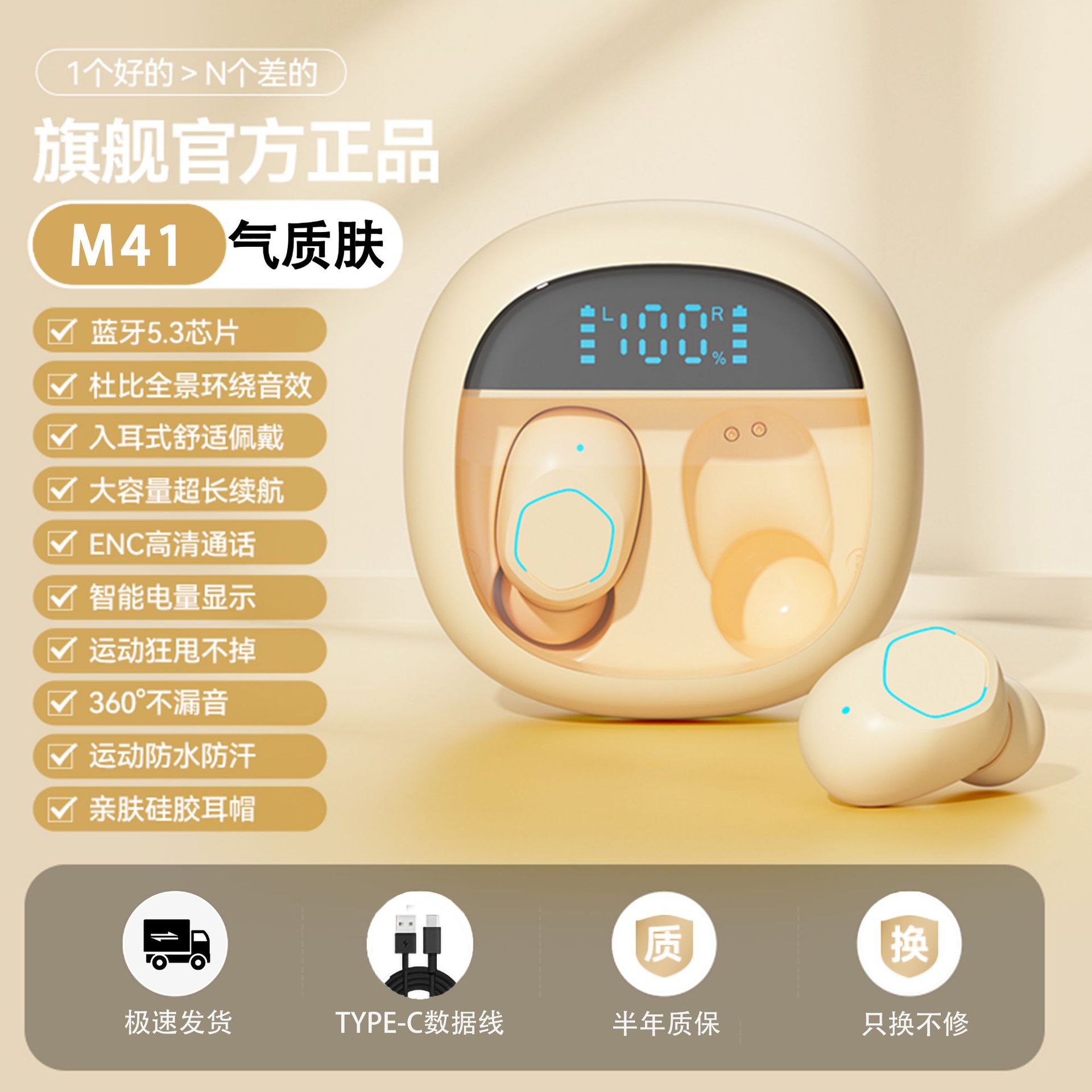跨境新款M41蓝牙耳机真无线入耳式5.3透明智能数显耳机降噪长续航
