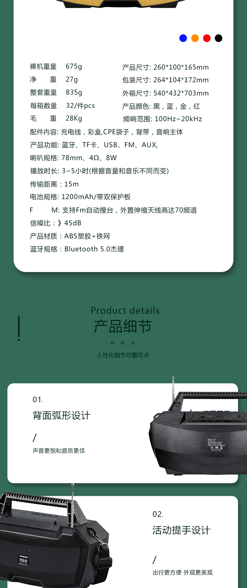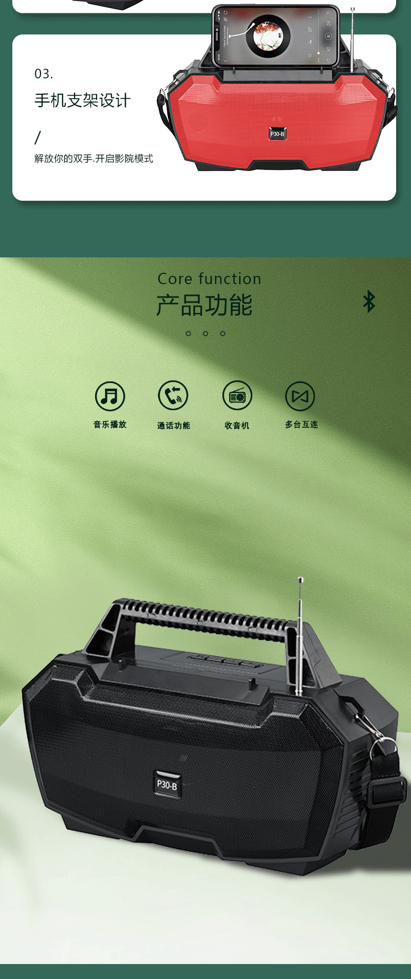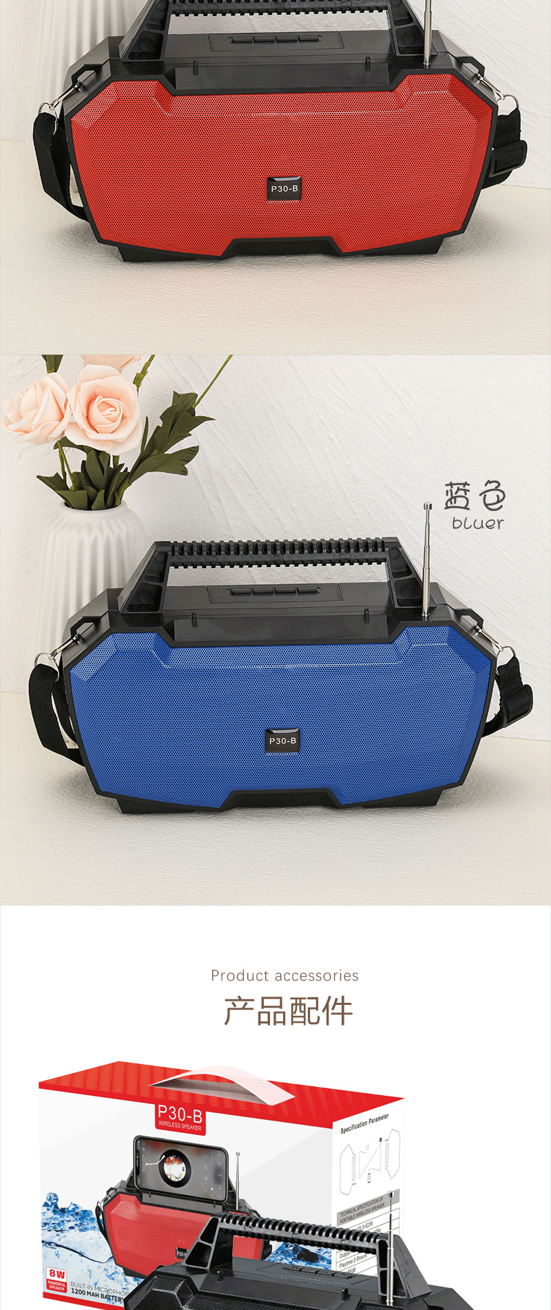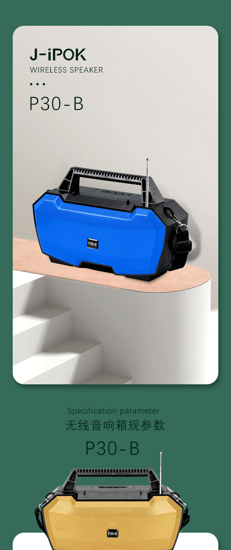 J-ipok-P30-B跨境爆款大功率蓝牙音箱便携式无线蓝牙音响插卡收音