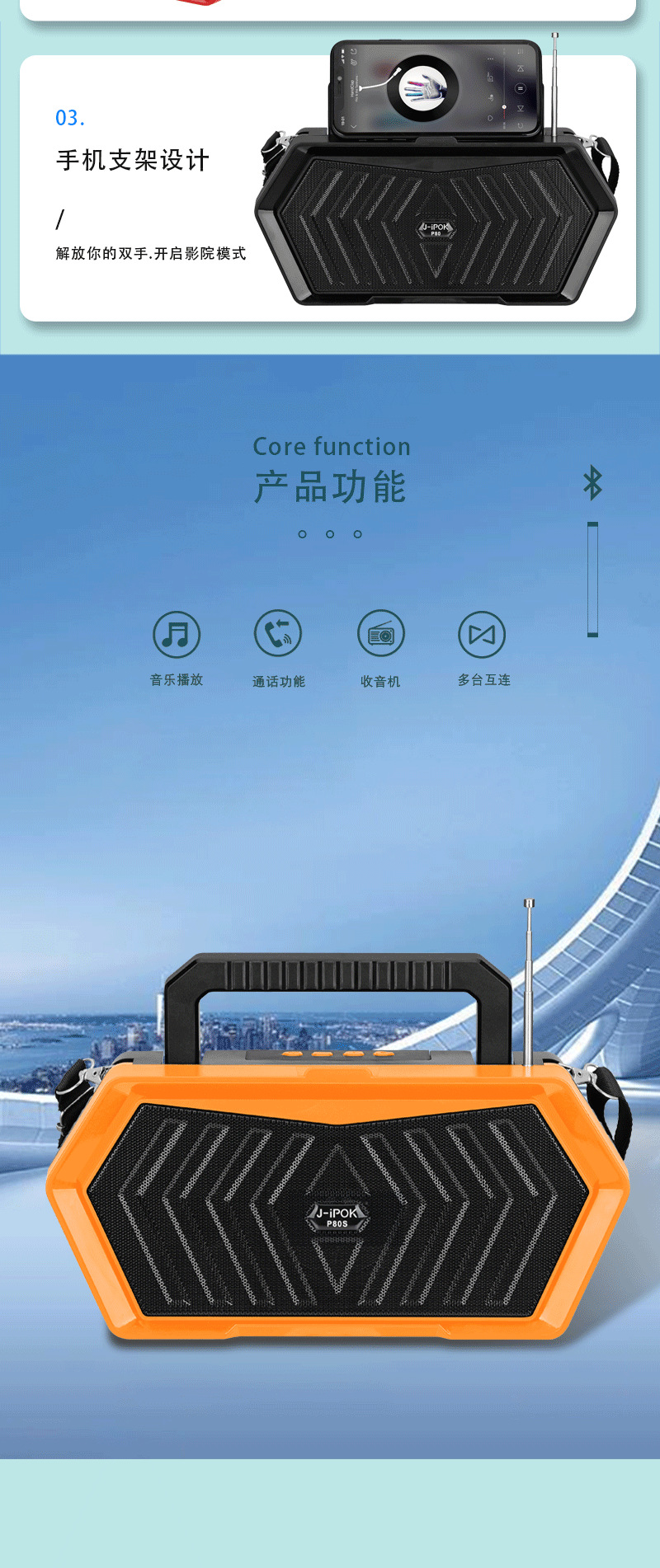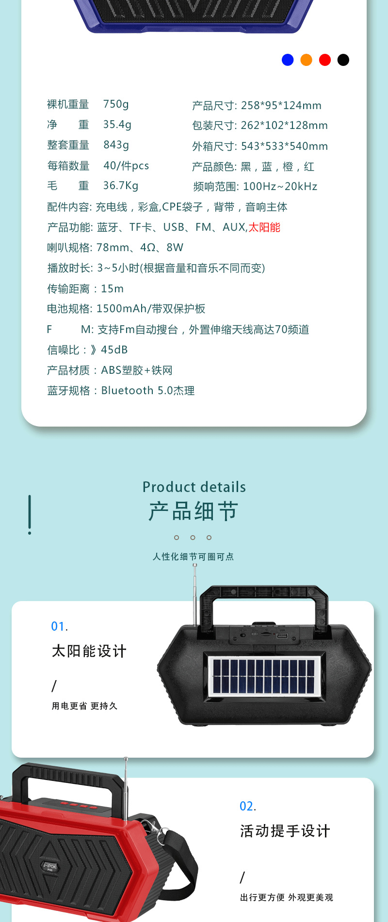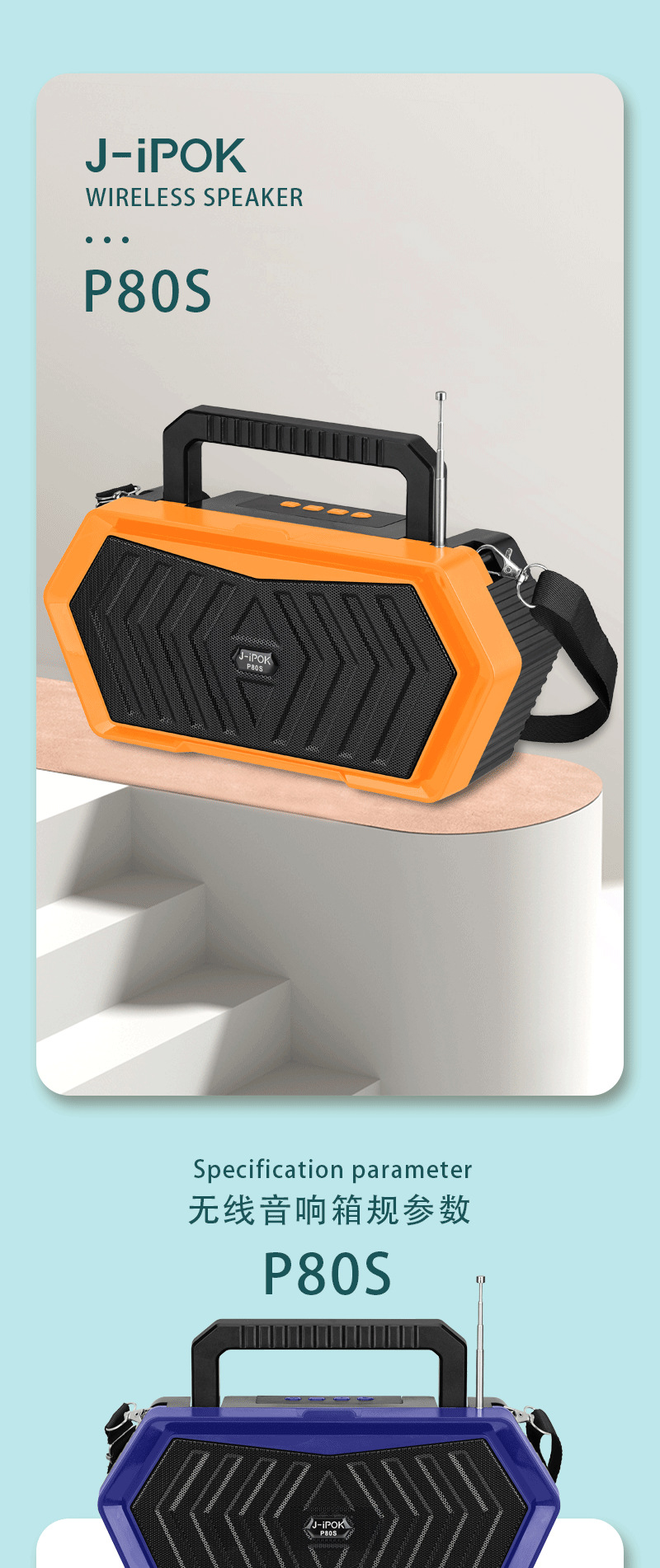 J-ipok P80S太阳能蓝牙音箱插卡U盘FM低音炮便携式无线蓝牙音响