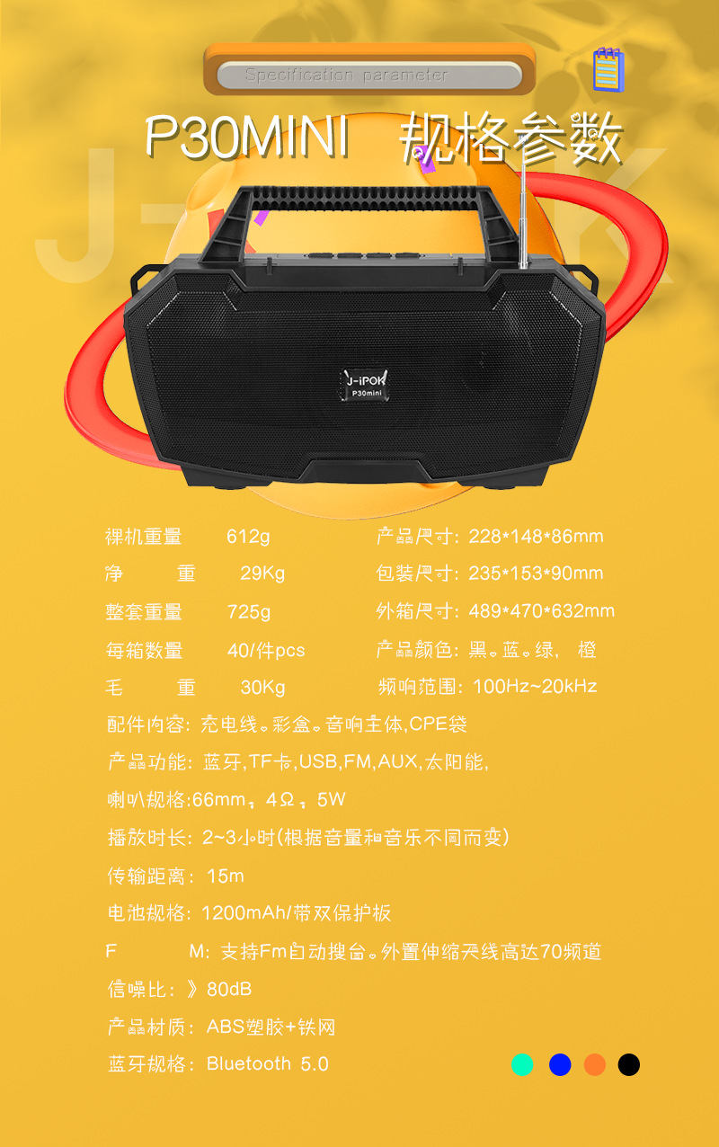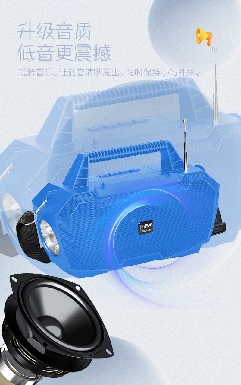J-IPOK P30mini爆款新品手提迷你太阳能手电筒蓝牙音箱无线音响