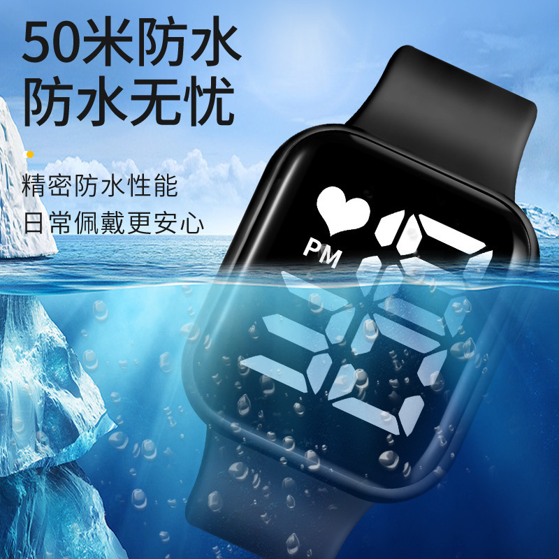 新款跨境小方块情侣儿童手表男女学生潮运动苹果款LED电子手表ins