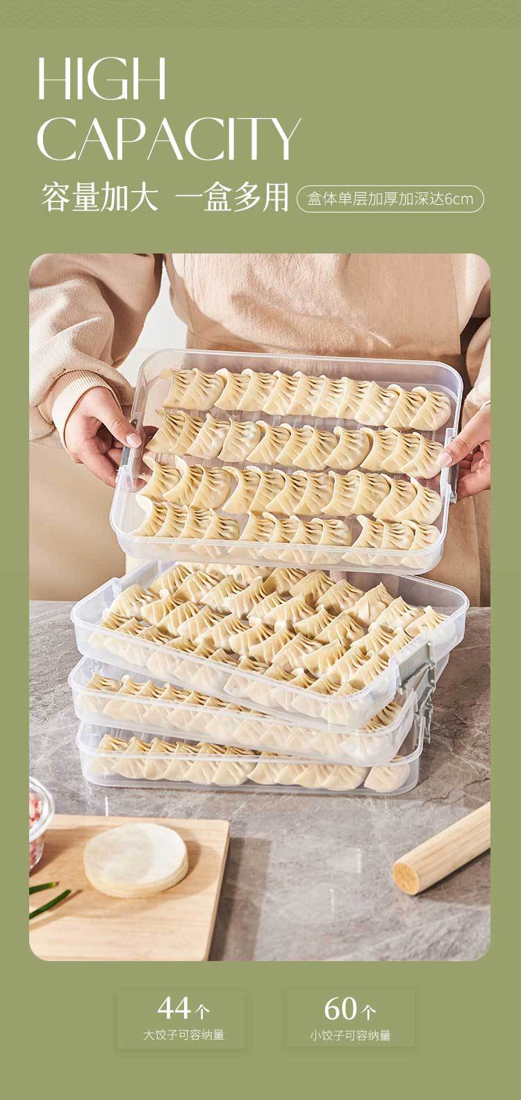 带盖水饺盒大号食品级馄饨盒透明加厚饺子盒多层有盖速冻保鲜盒