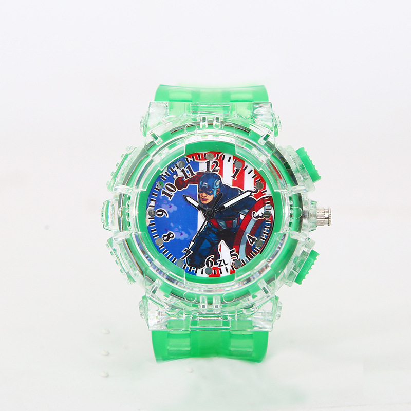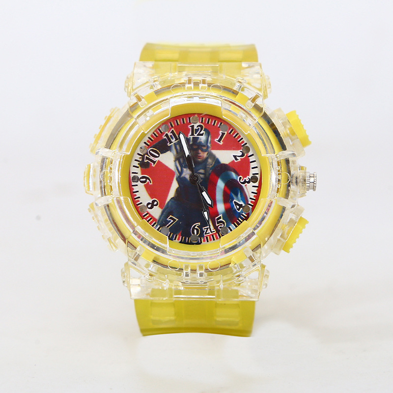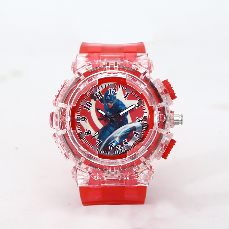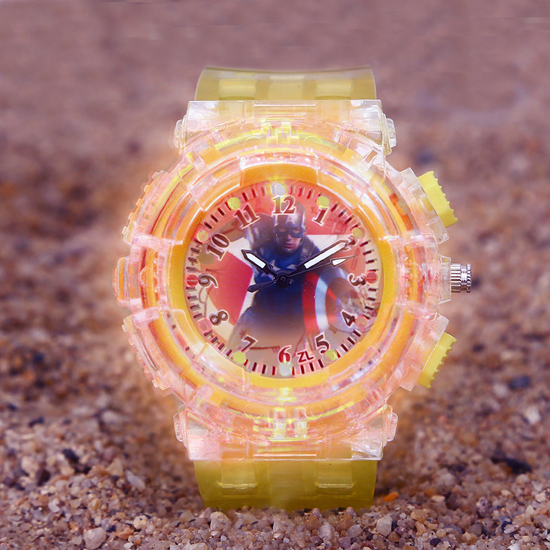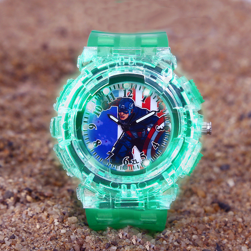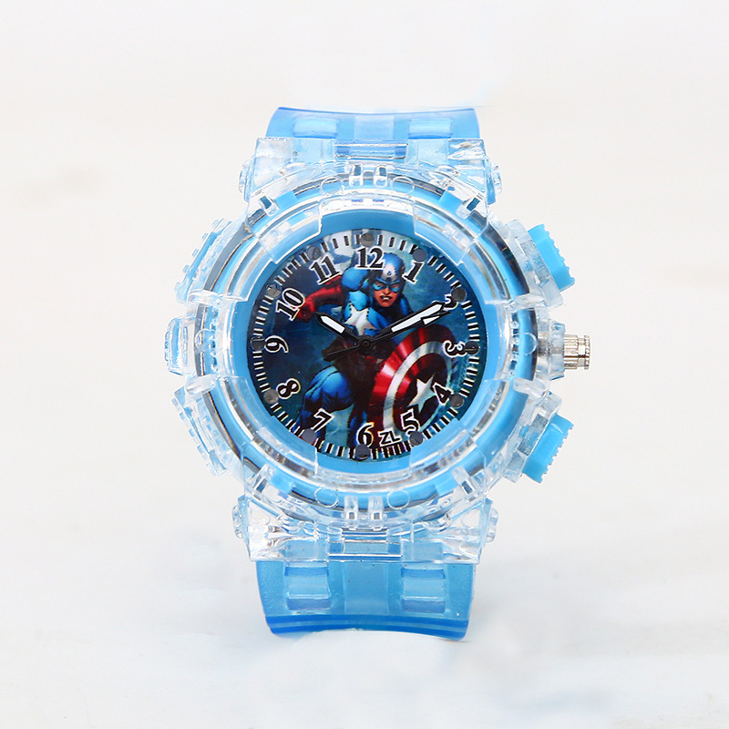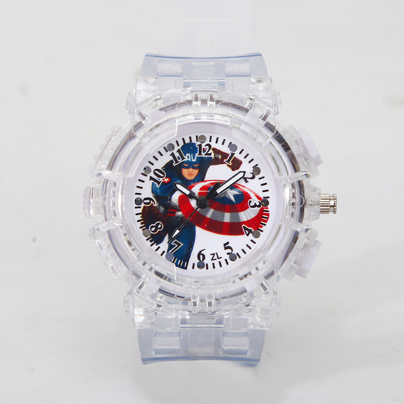美国队长儿童手表动漫超级英雄LED电子表小学生指针式识字石英表