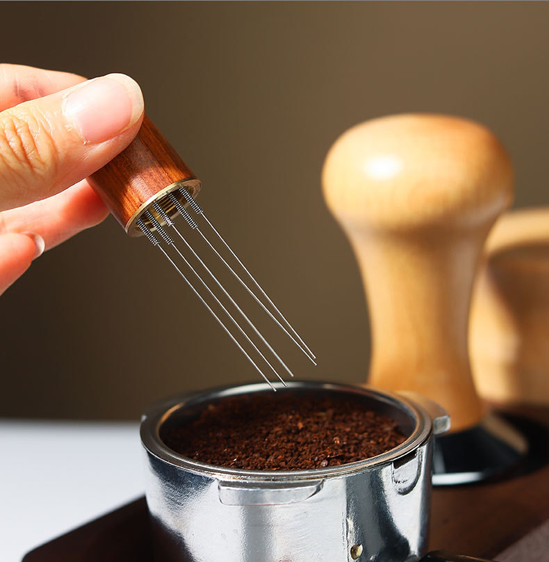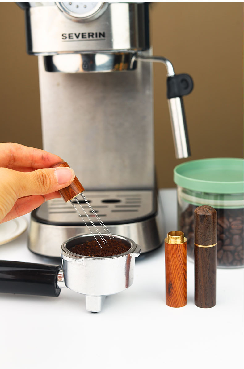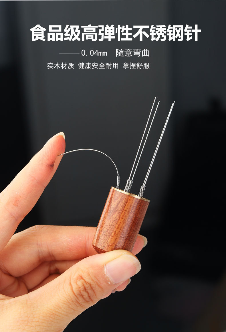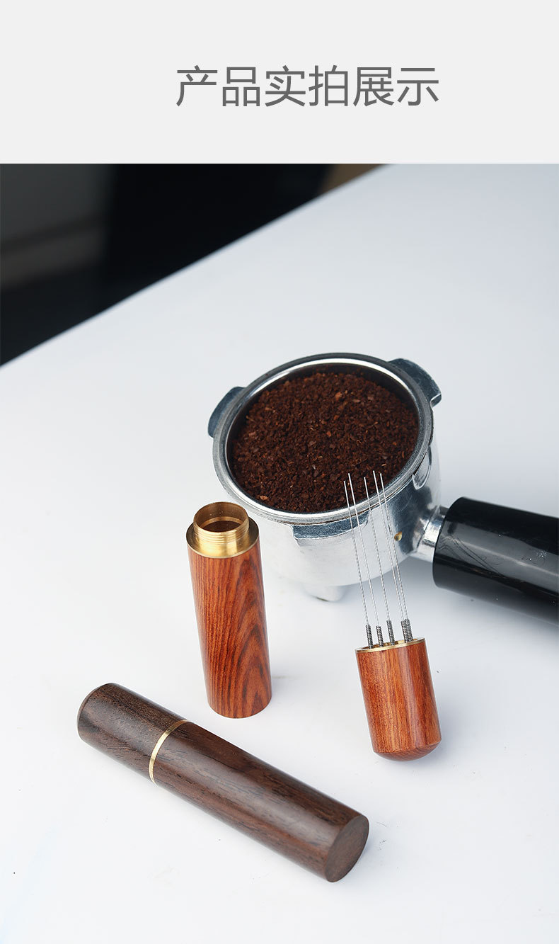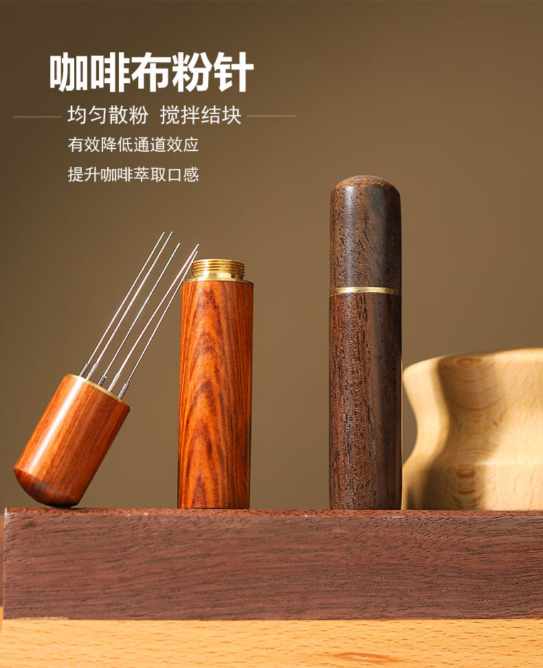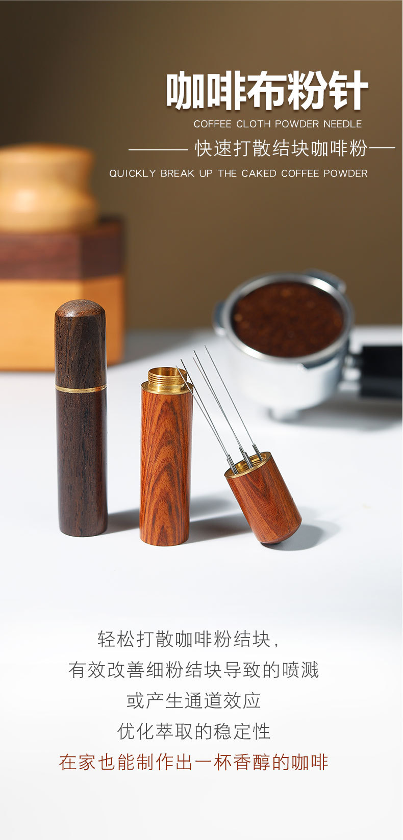 批发咖啡布粉针不锈钢咖啡搅拌结块打散器实木带收纳散粉针意式