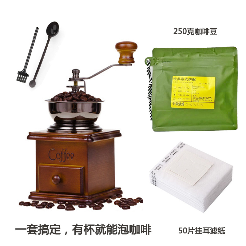 磨豆机咖啡豆手摇研磨机粉碎机家用手动磨豆机复古原木磨粉机