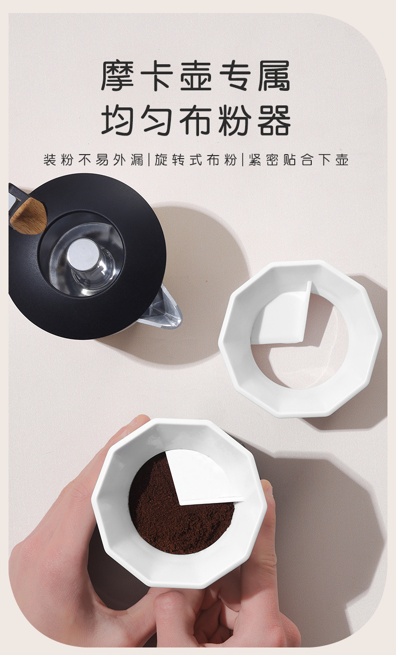 摩卡壶布粉器新款咖啡壶接粉环无压转转平快速布粉不撒粉布粉器