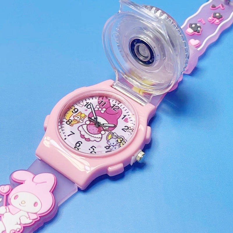 卡通翻盖库洛米大耳狗石英表手表动漫转动电子表女孩可爱小学生表