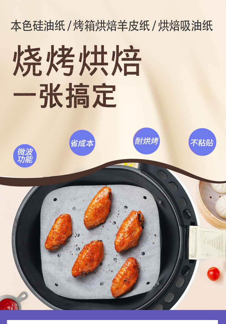 跨境批发家用耐高温烘焙烤盘空气炸锅纸食物烤箱烘焙硅油纸烧烤纸
