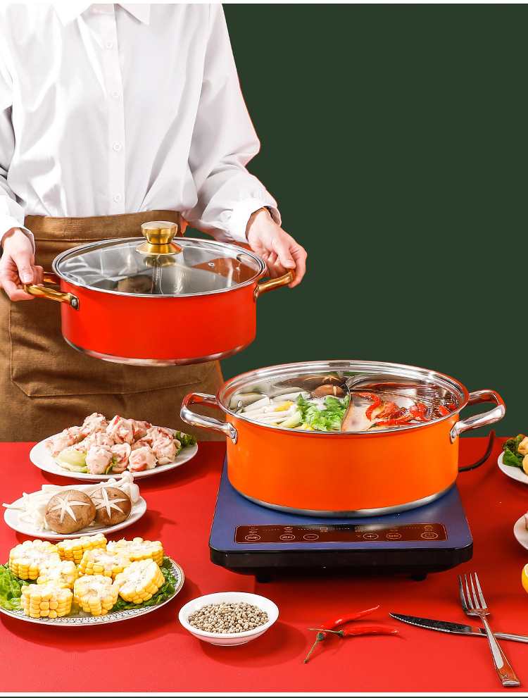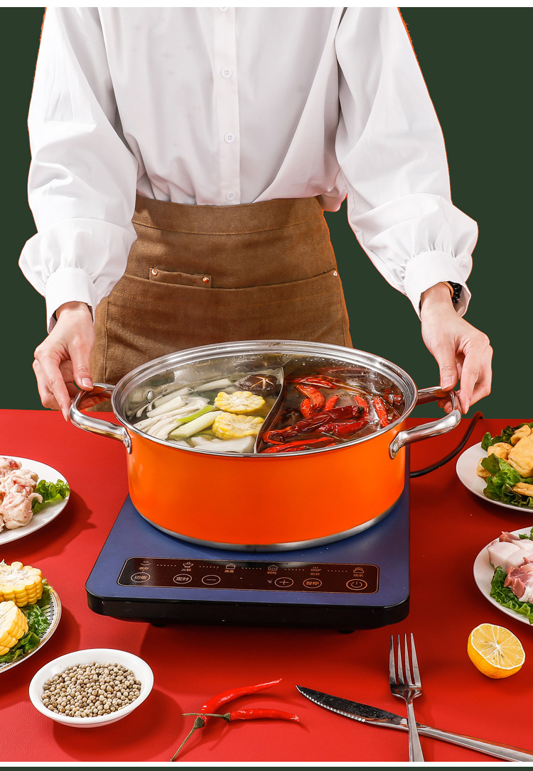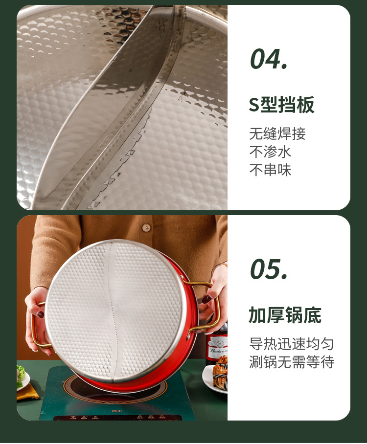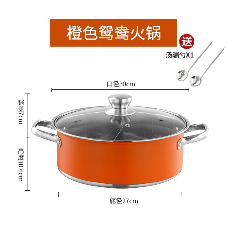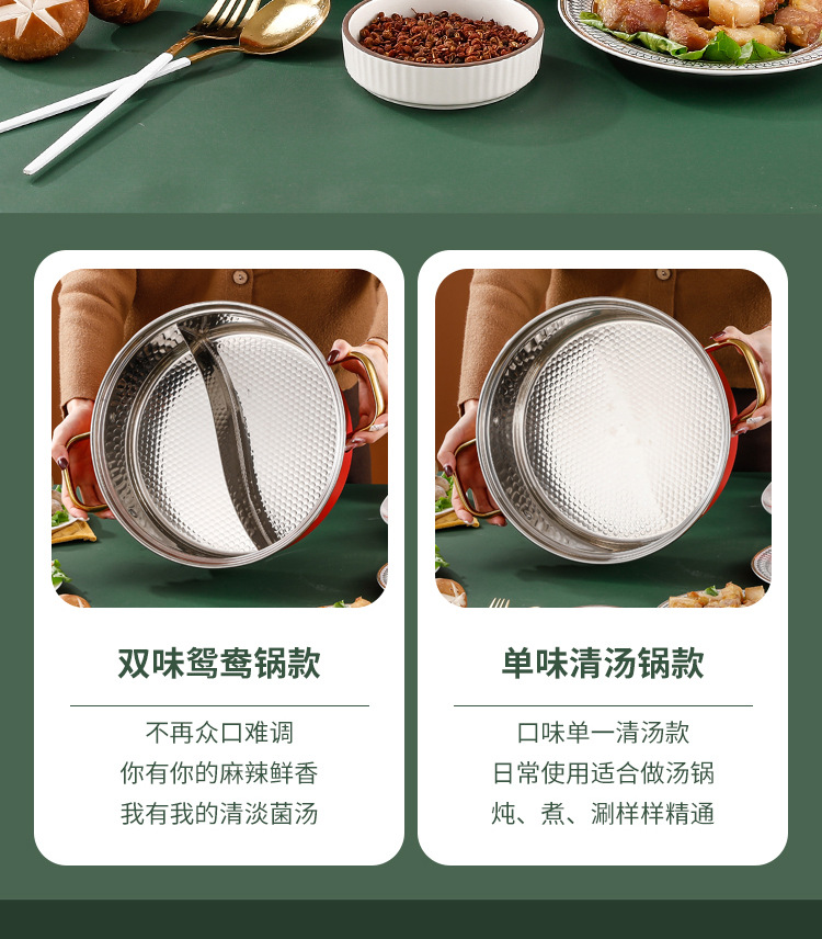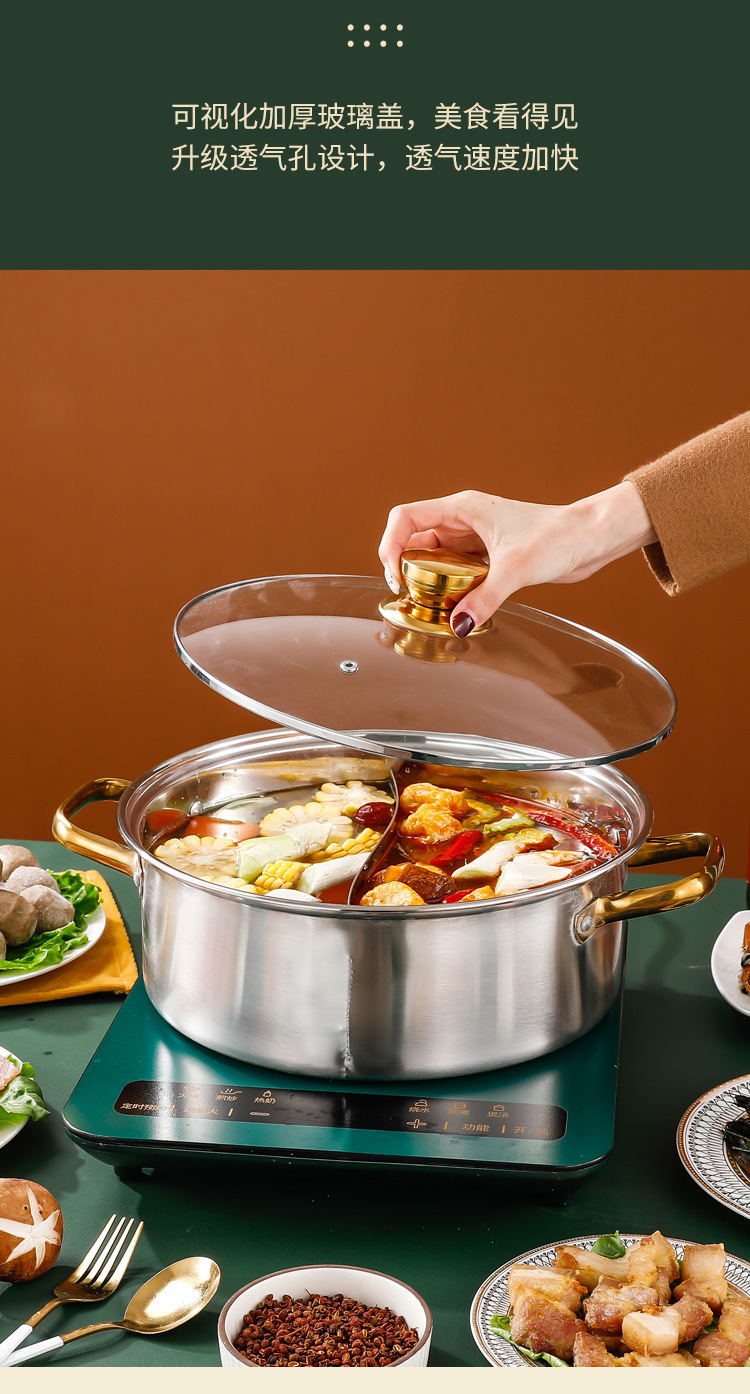 鸳鸯锅带盖套装不锈钢直型二味分隔火锅家用鱼鳞底不粘汤锅礼品