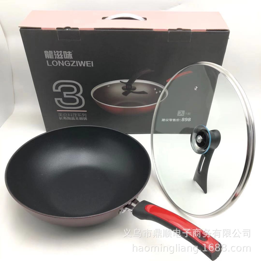 龙滋味陶晶不粘锅平底无烟炒锅养生铁锅套装礼品批发炉具通用锅具