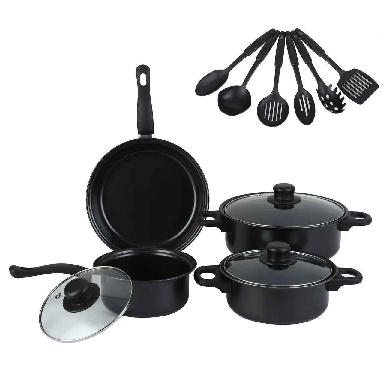 外贸热销十三件套锅具套装奶锅汤锅平底小煎锅盖子铲子组成锅套装