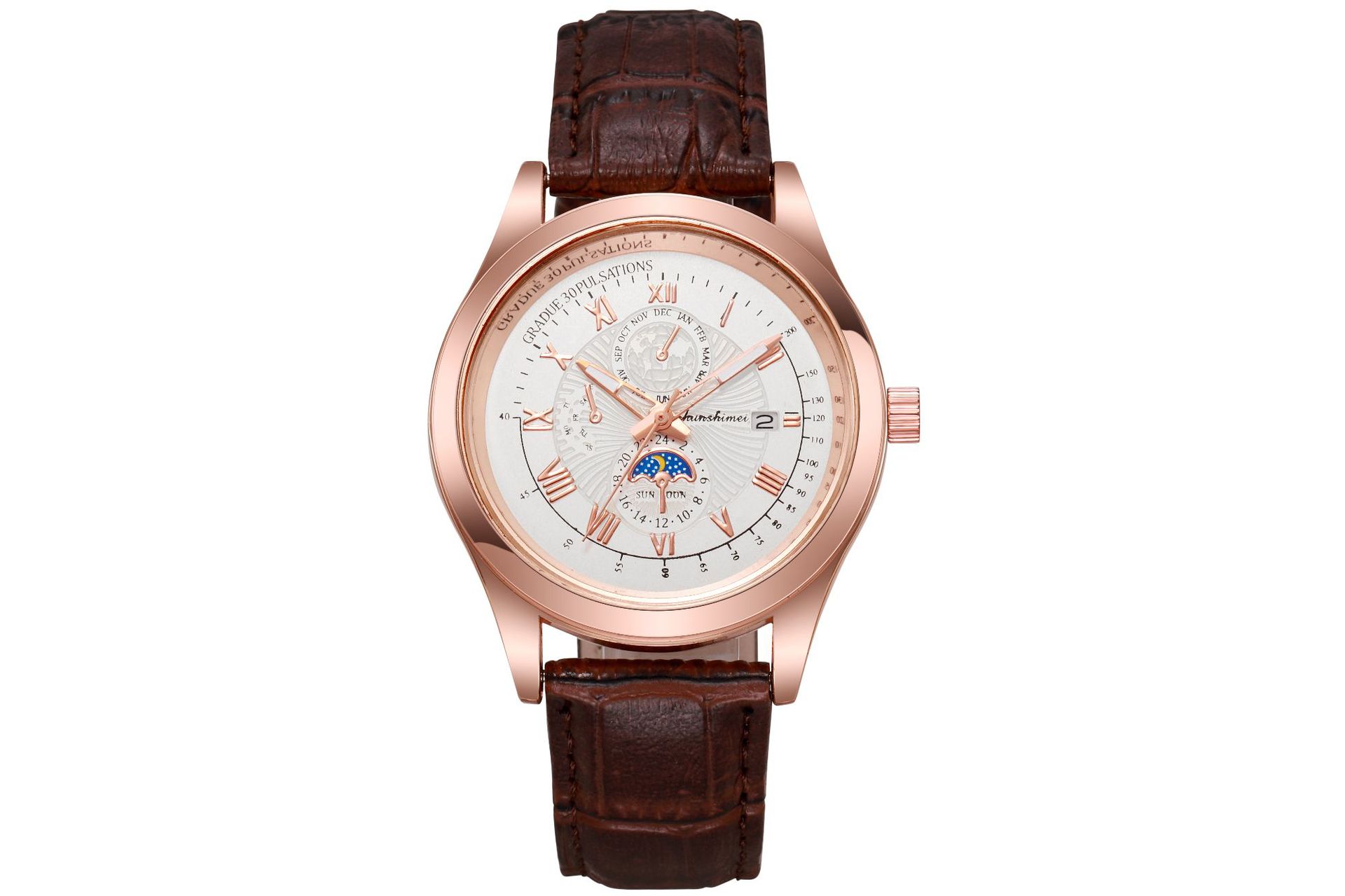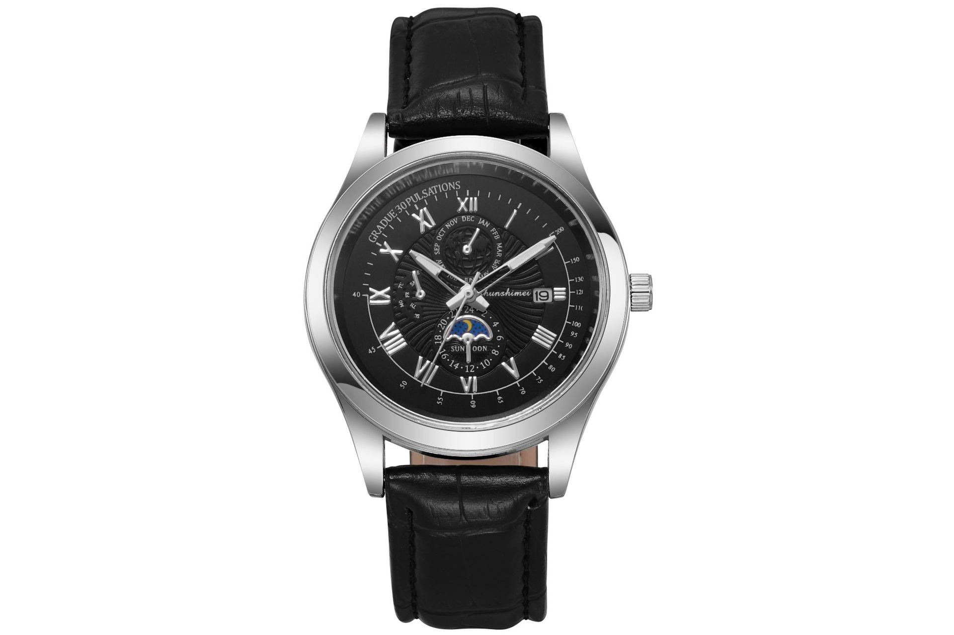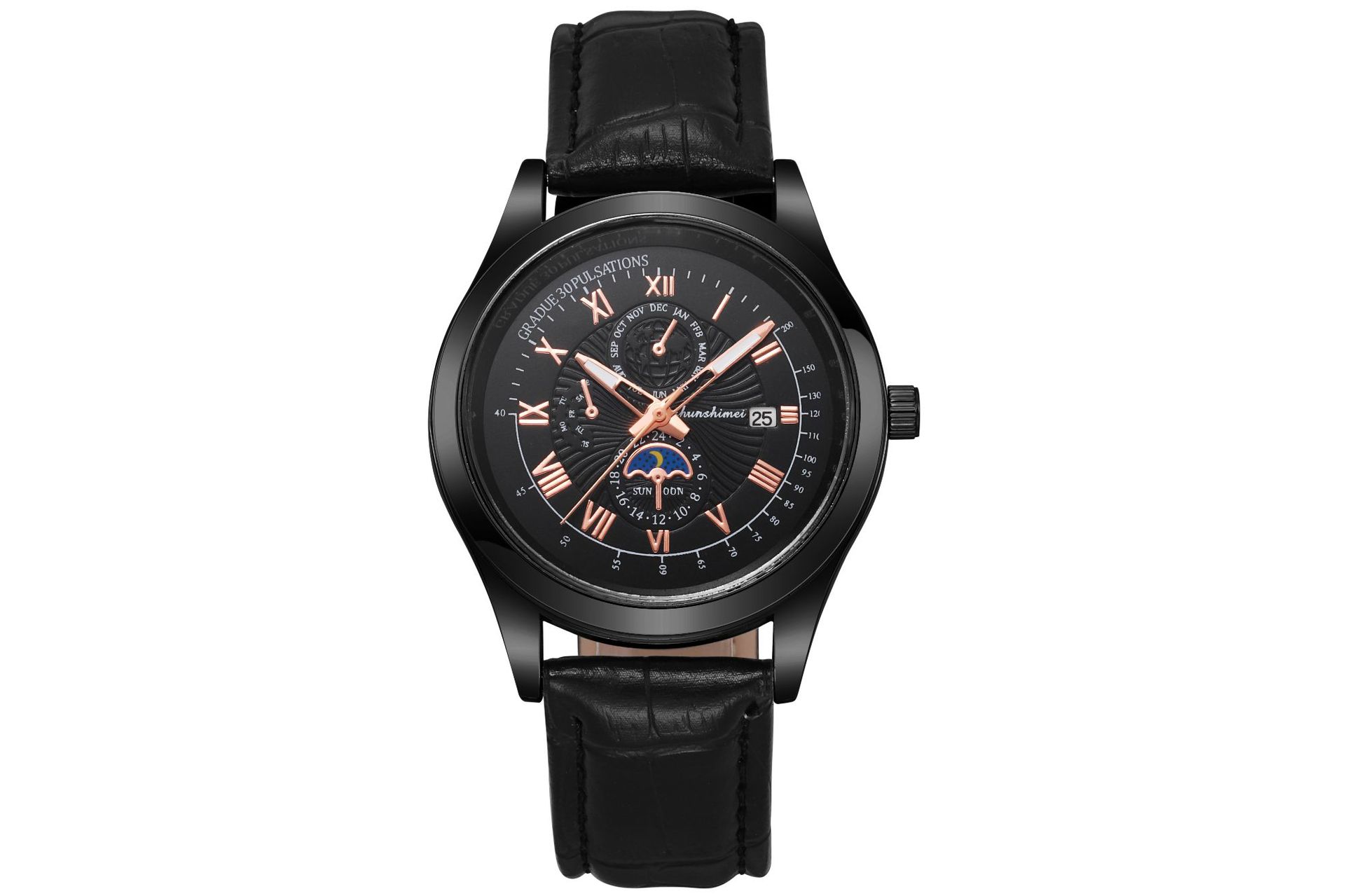 夜光男士商务手表 蓝光玻璃假三眼罗马数字皮带 日历石英腕表男款