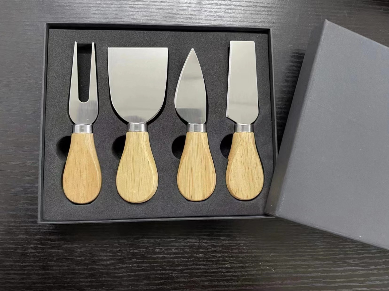 厂家批发不锈钢芝士刀4件套装木柄奶油切刀披萨刀奶酪芝士刀套装