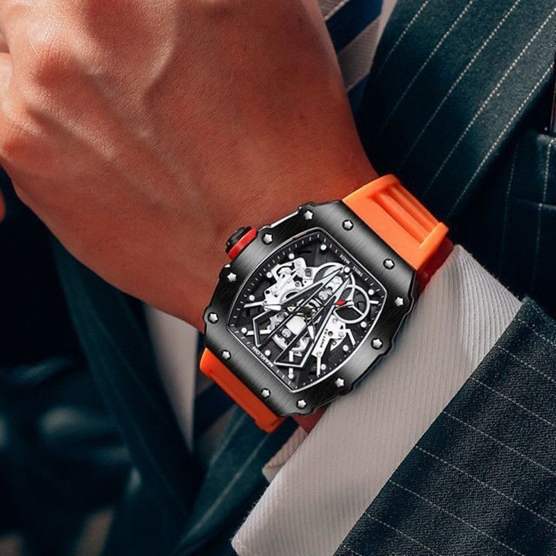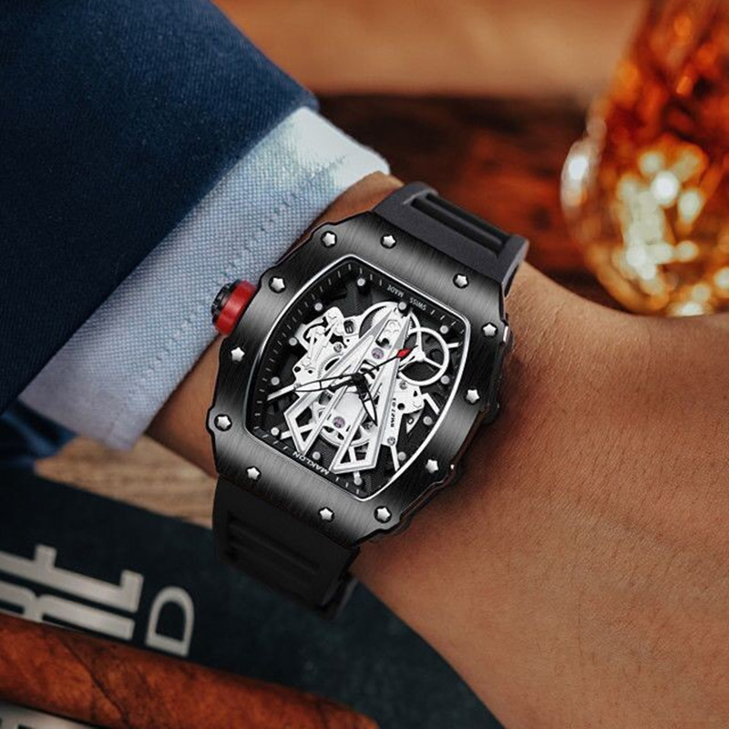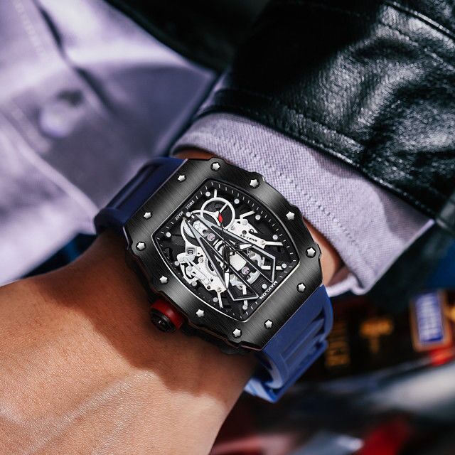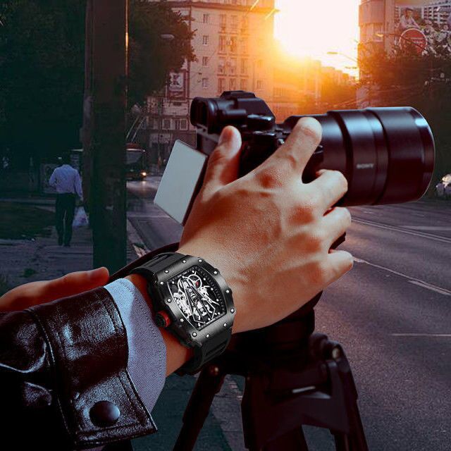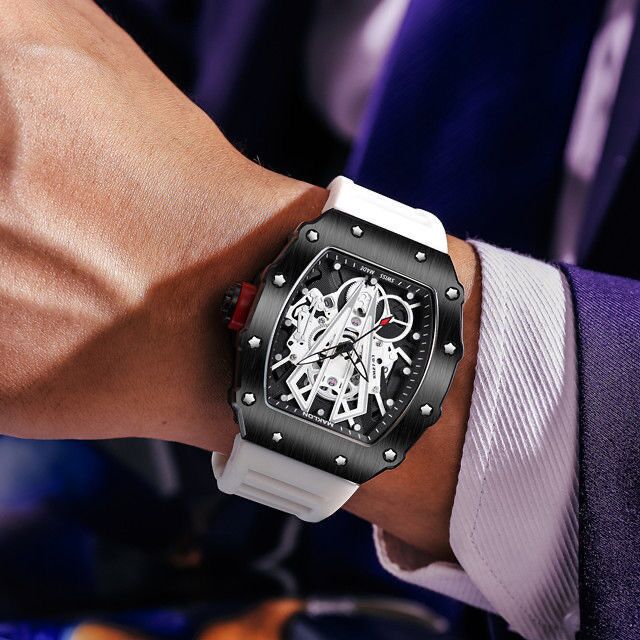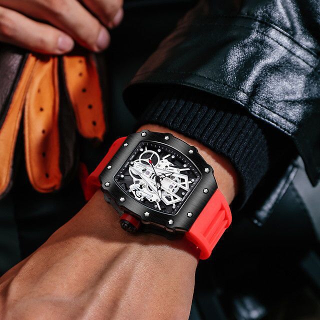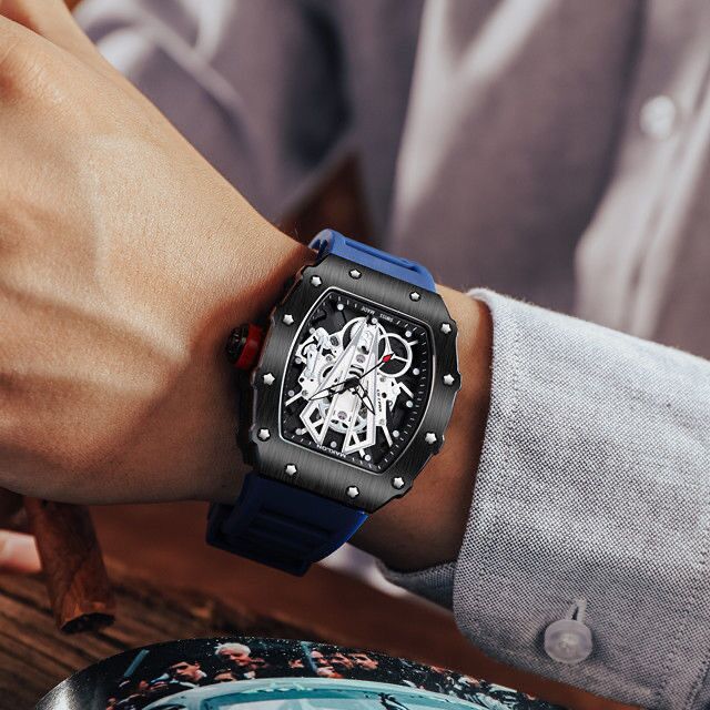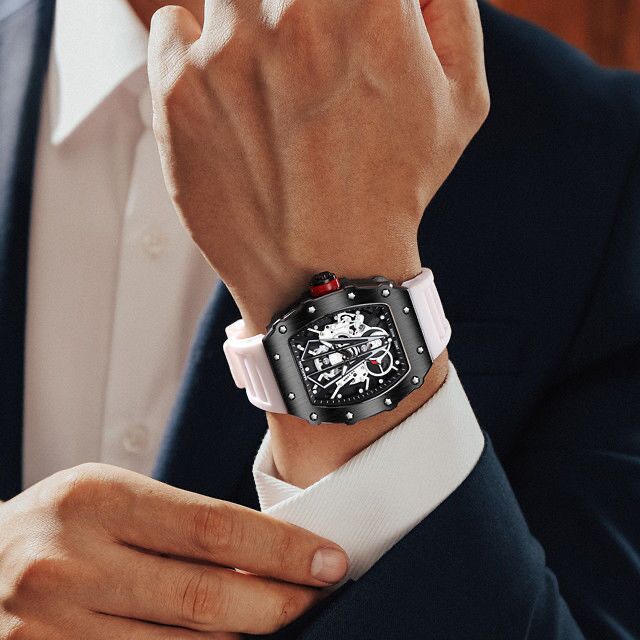 外贸货源新款男士石英手表欧美休闲硅胶鬼头表酒桶形手表表批发