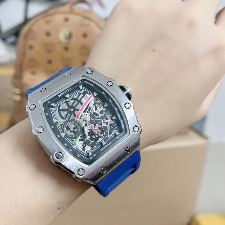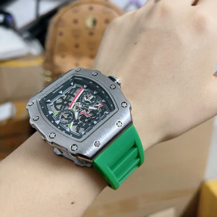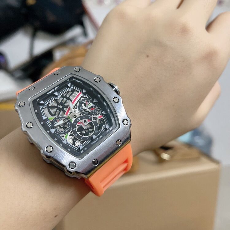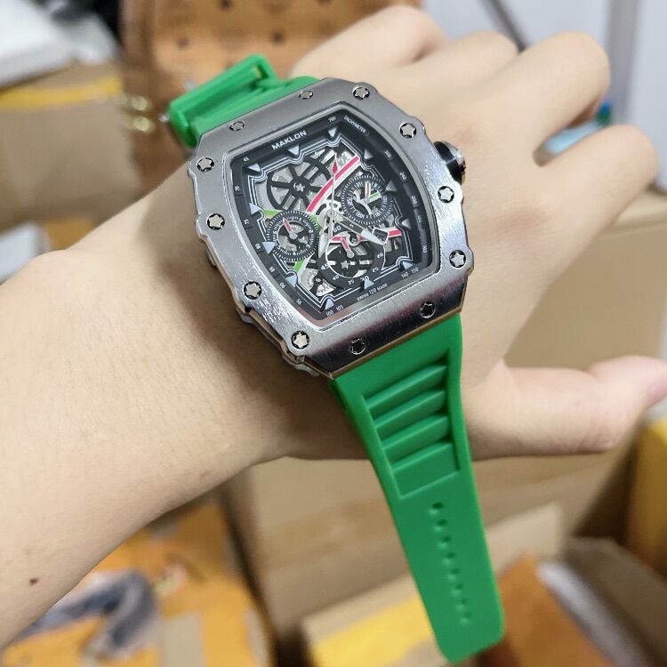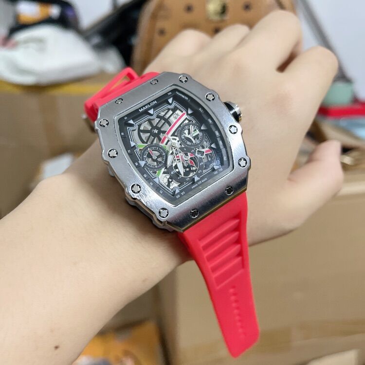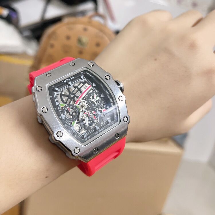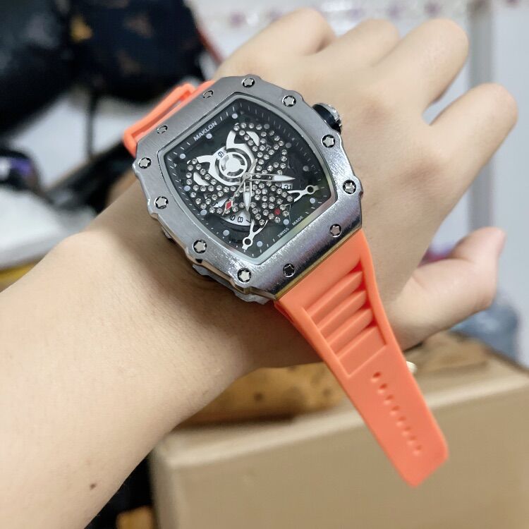 外贸货源新款男士石英手表欧美休闲硅胶鬼头表酒桶形手表表批发
