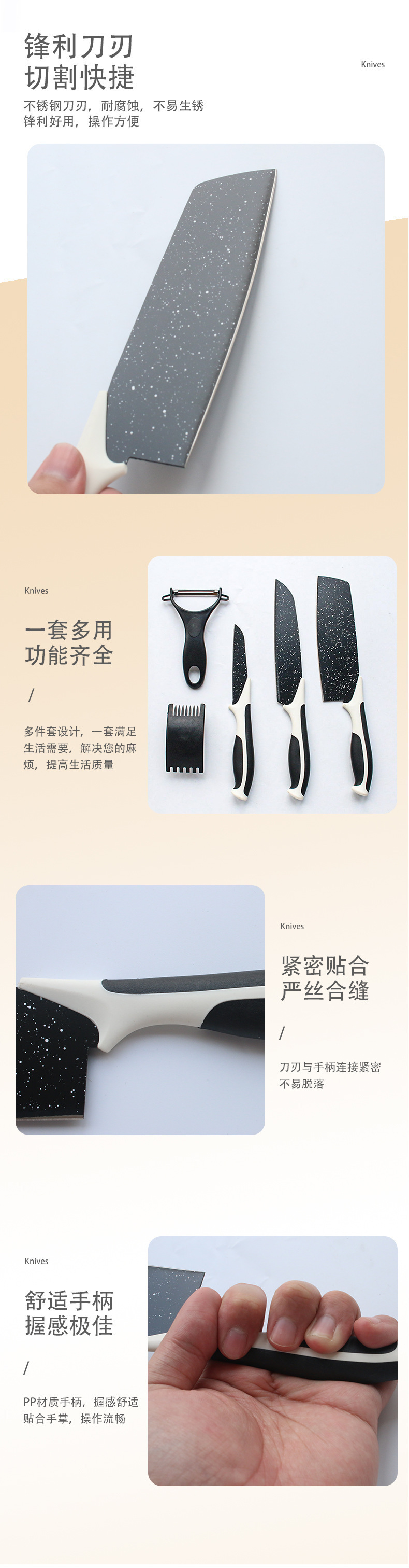 热销款套装不锈钢五件套麦饭石刀具礼品装厨房刀外贸现货厂家直销