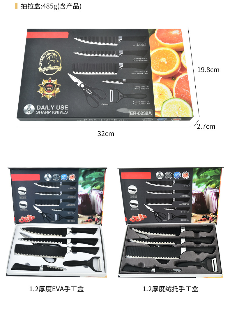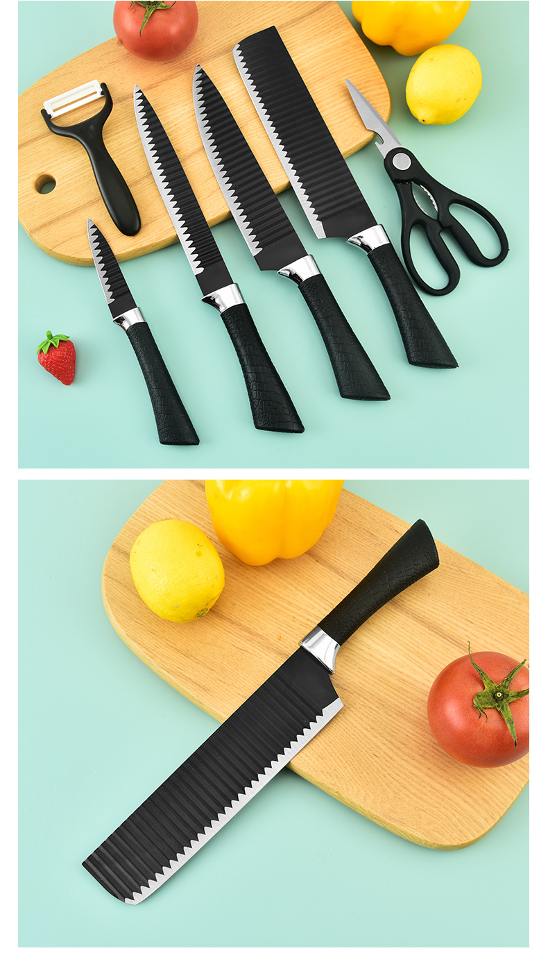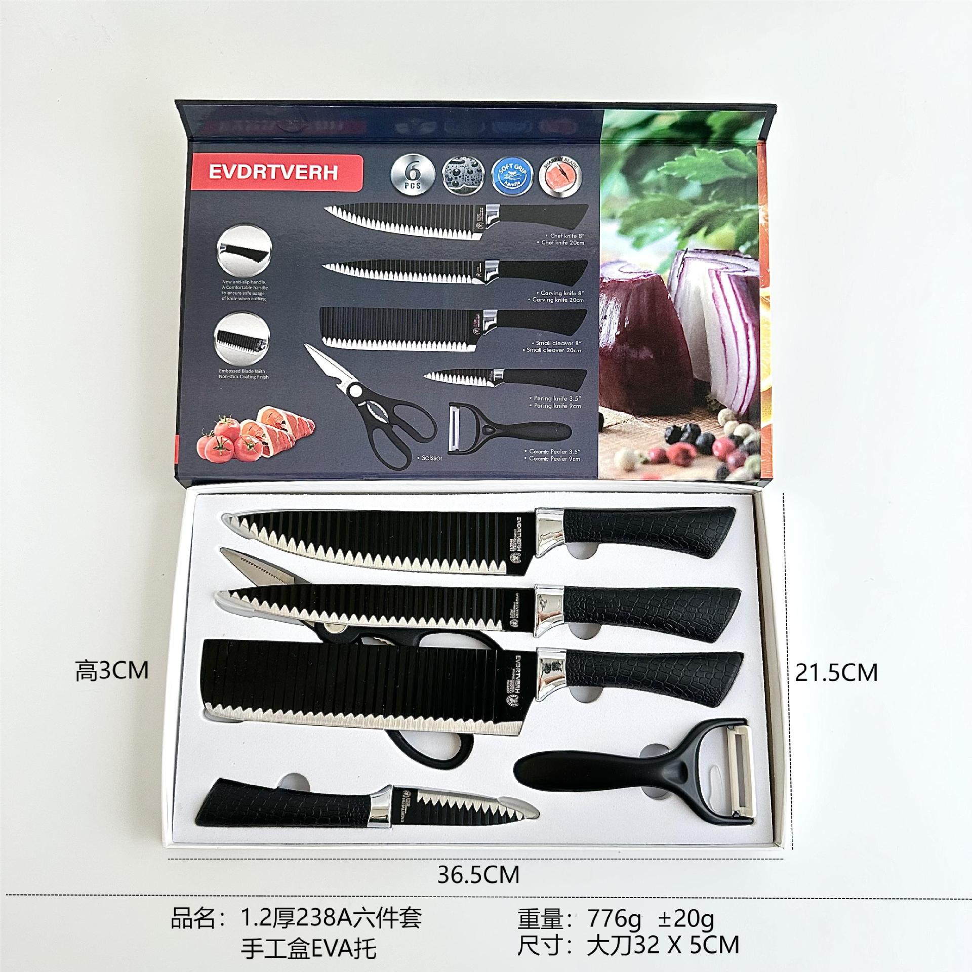 刀具套装不锈钢波浪纹六件套厨房家用外贸跨境网红厨师刀礼盒装