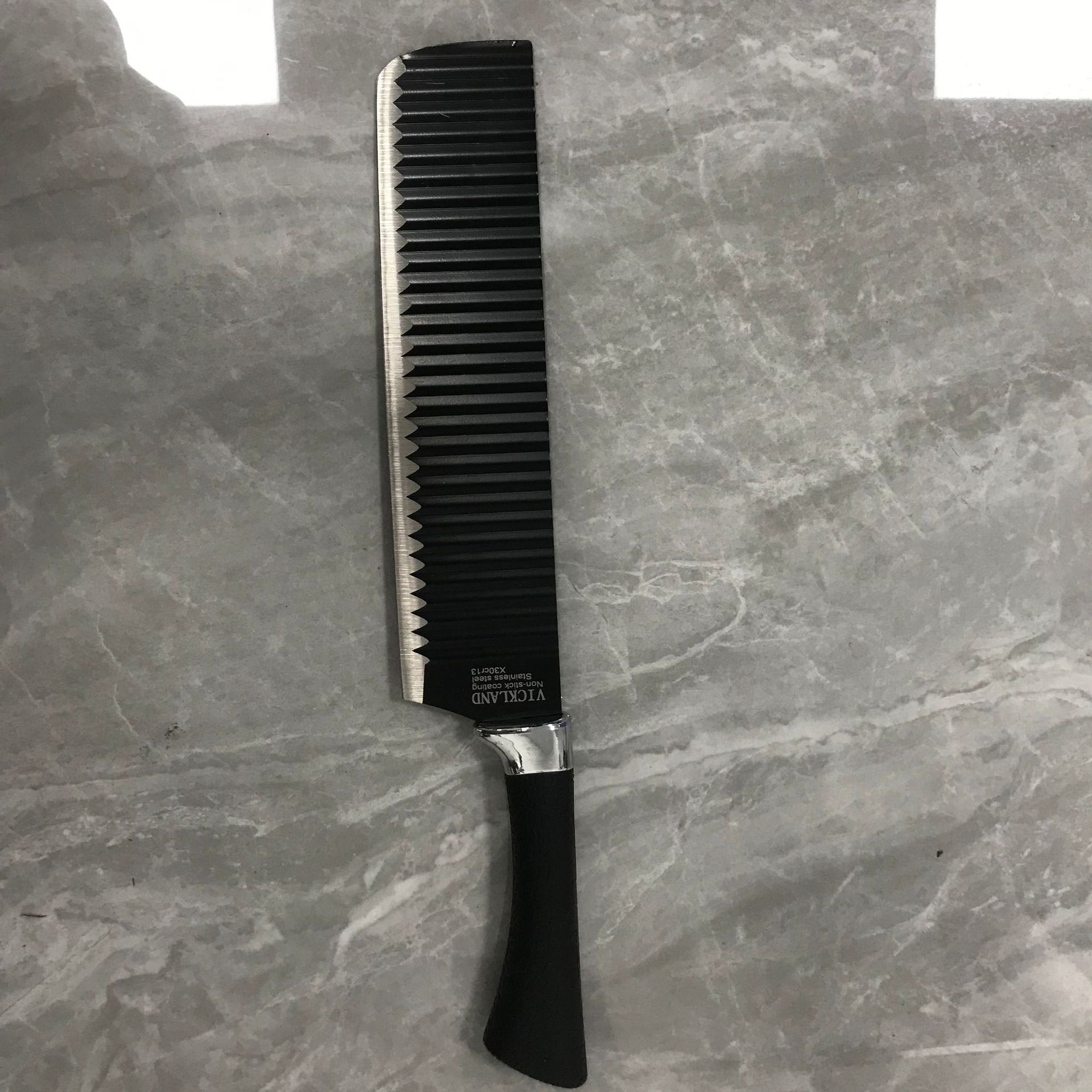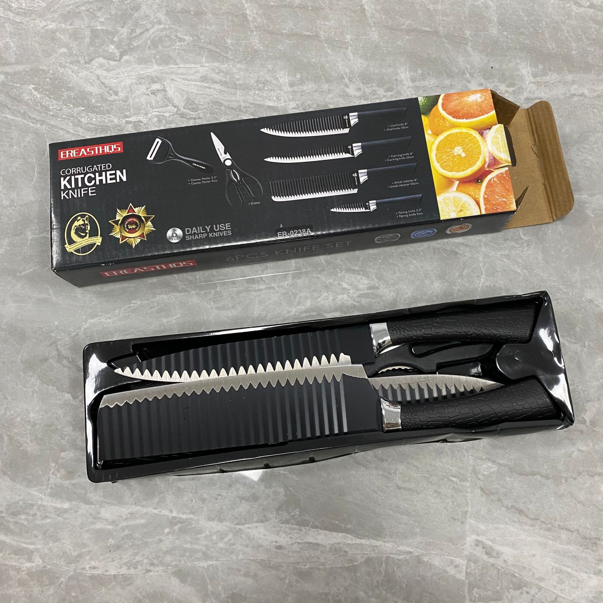马蹄柄厨师刀六件套黑色波浪纹厨房不锈钢刀具套装波浪菜刀水果刀