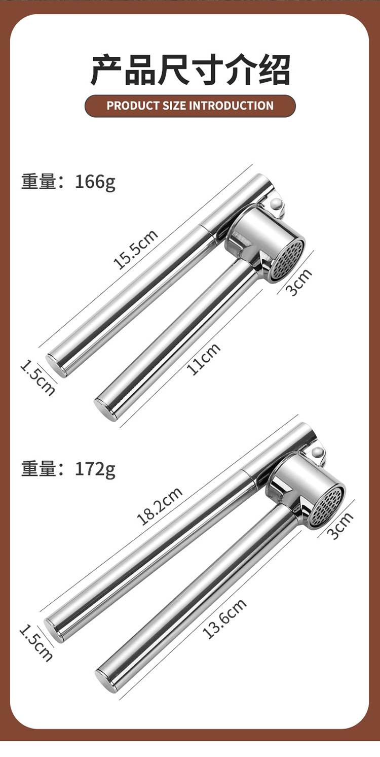 不锈钢加长挤大蒜剥蒜器夹蒜蓉捣蒜器压蒜泥器家用锌合金神器
