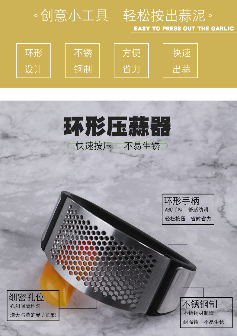 压蒜器捣蒜器 手动环形剥蒜器压蒜泥打蒜器 不锈钢蒜泥器压蒜器