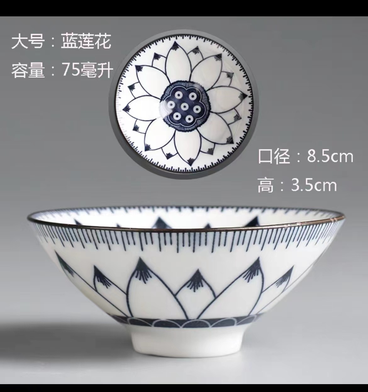 青花瓷茶杯茶碗品茗斗笠杯陶瓷功夫小茶杯单杯主人杯茶具茶盏套装