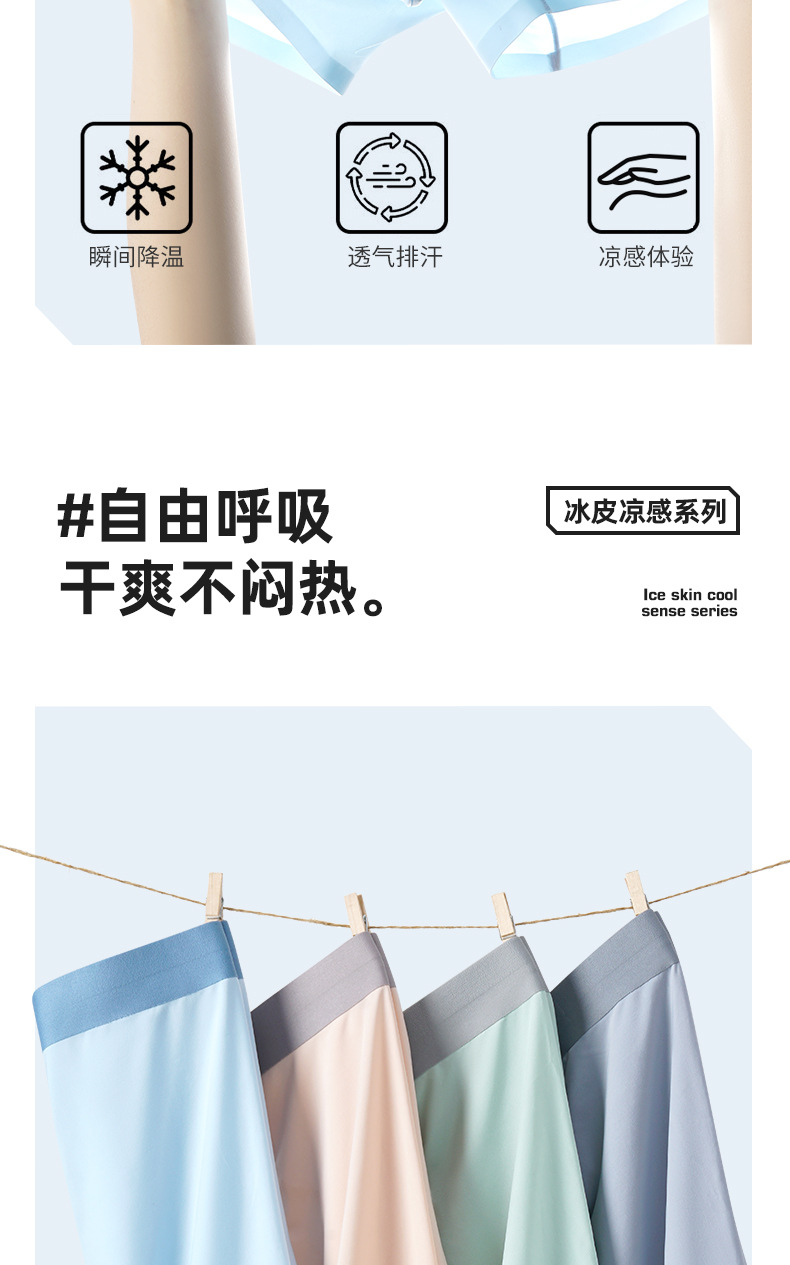 直播供应内裤男士冰丝平角裤无痕薄款运动裆四角短裤透气裤衩夏季