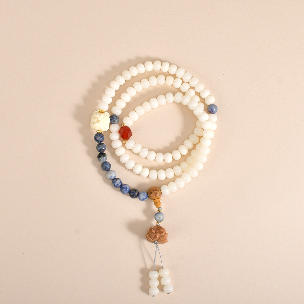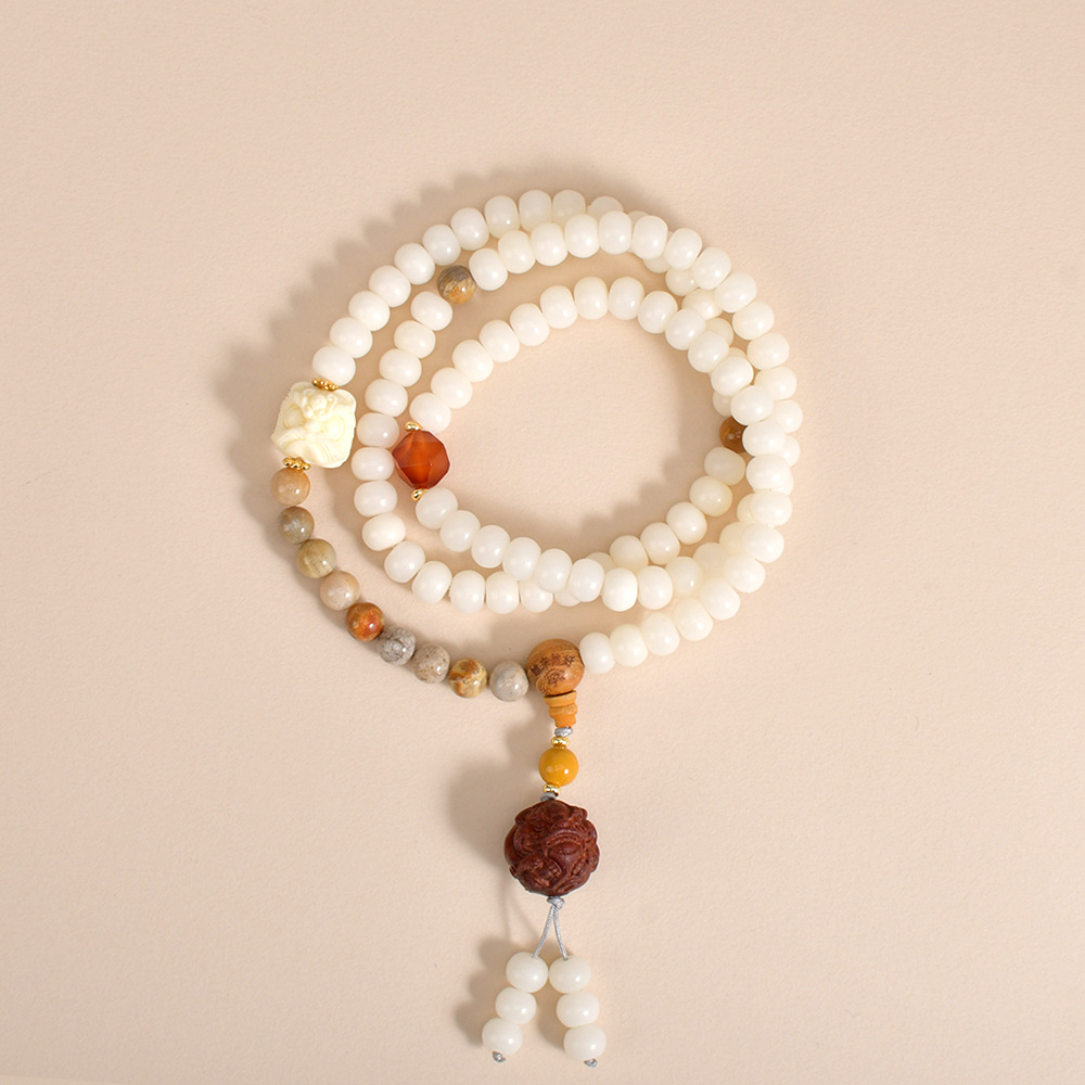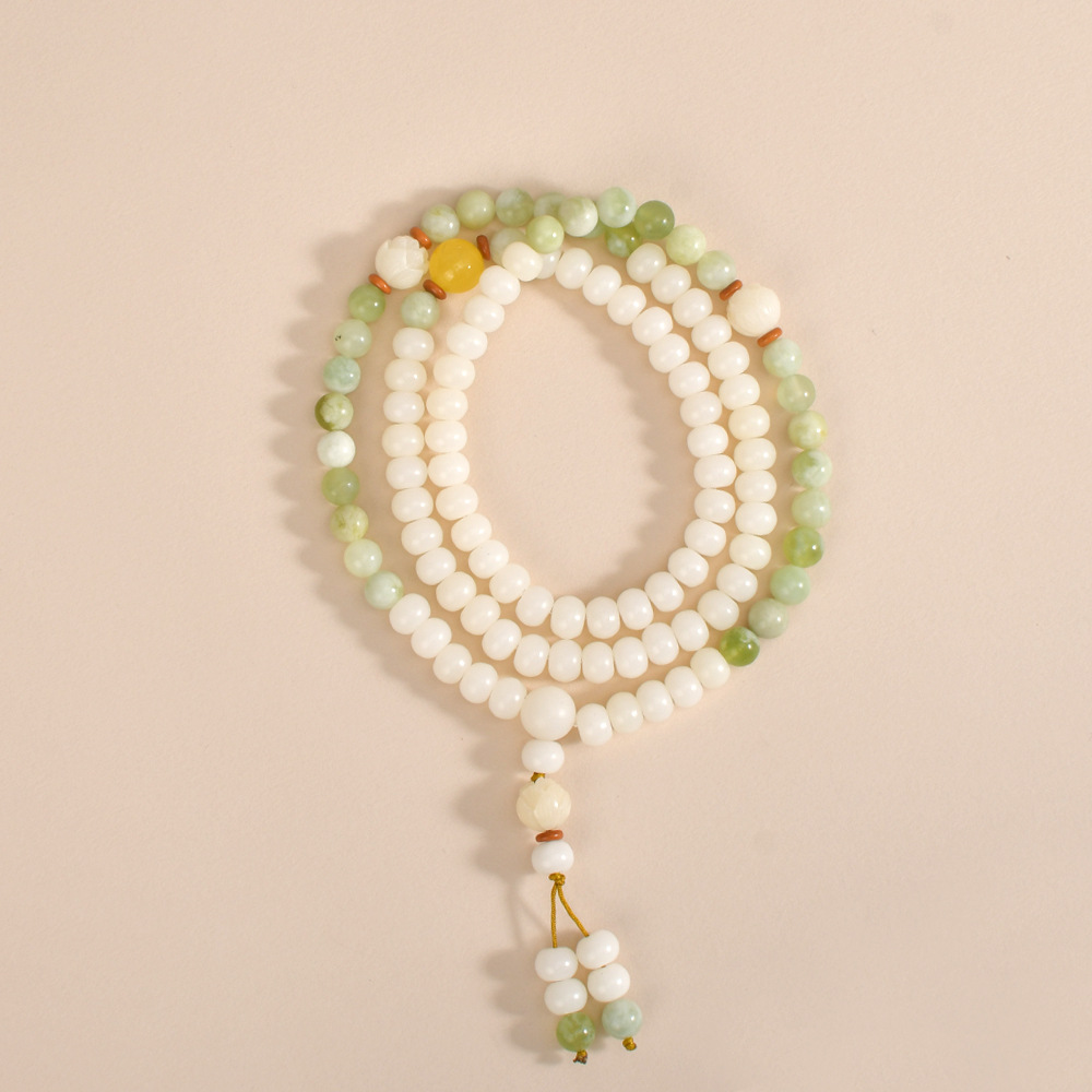 原创设计款天然白玉菩提多圈项链手链白玉菩提莲花女款文玩佛珠念