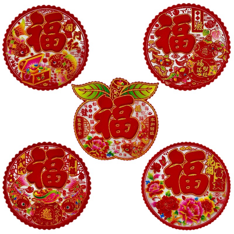 PET彩色植绒撒粉搬家窗花乔迁新年春节窗户PVC福字贴装饰