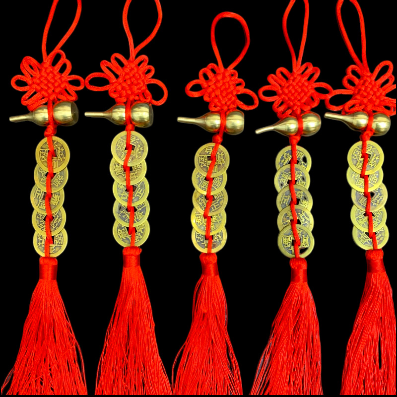 五帝吊钱铜葫芦挂件,总长度约30cm左右,葫芦长度4cm左右,加厚铜钱铜葫芦可以拧开装朱砂