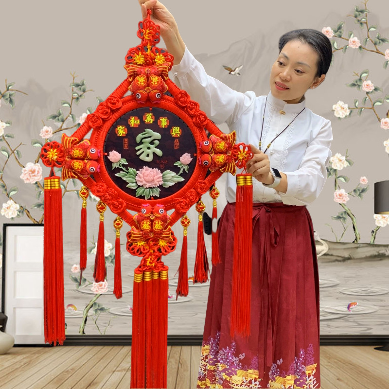 34方方形仿玉雕桃木中国结,40# 福字和家字两个款式可选,8鱼12花桃木中国结方形四角8鱼、下方流苏丝光转Y珠六个,一箱40个(实际尺寸:40# 面板34cm角56cm总长度130cm左右.中间桃木面仿玉雕刻,板结纯手工编制高端大气上档次,适合客厅乔迁背景墙过年Z财装饰,8鱼寓意8方来财、12朵花寓意月月有钱花、下方流苏一排排四季都发财、高档大气吉祥挂件,支持一件代发