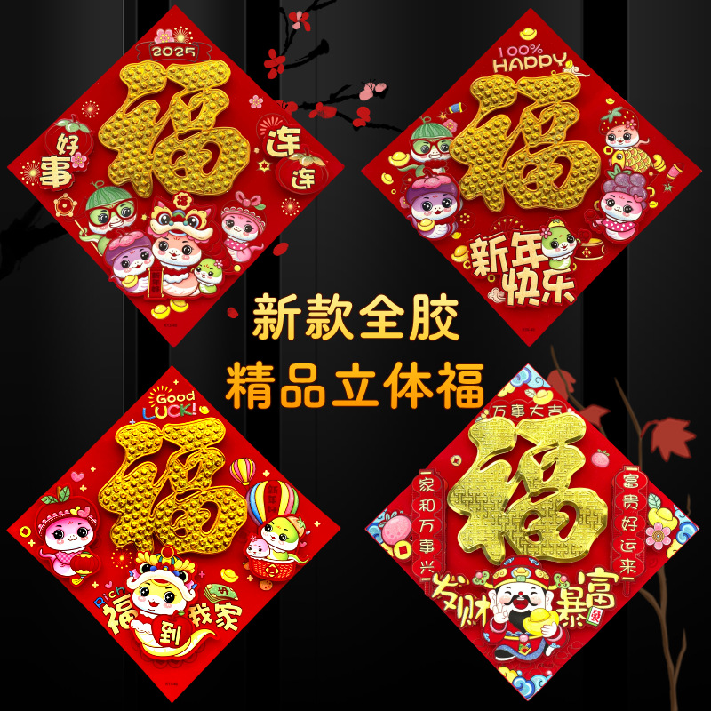 2025新款新年蛇年福字门贴 春节布置过新年装饰 全胶精品立体福字