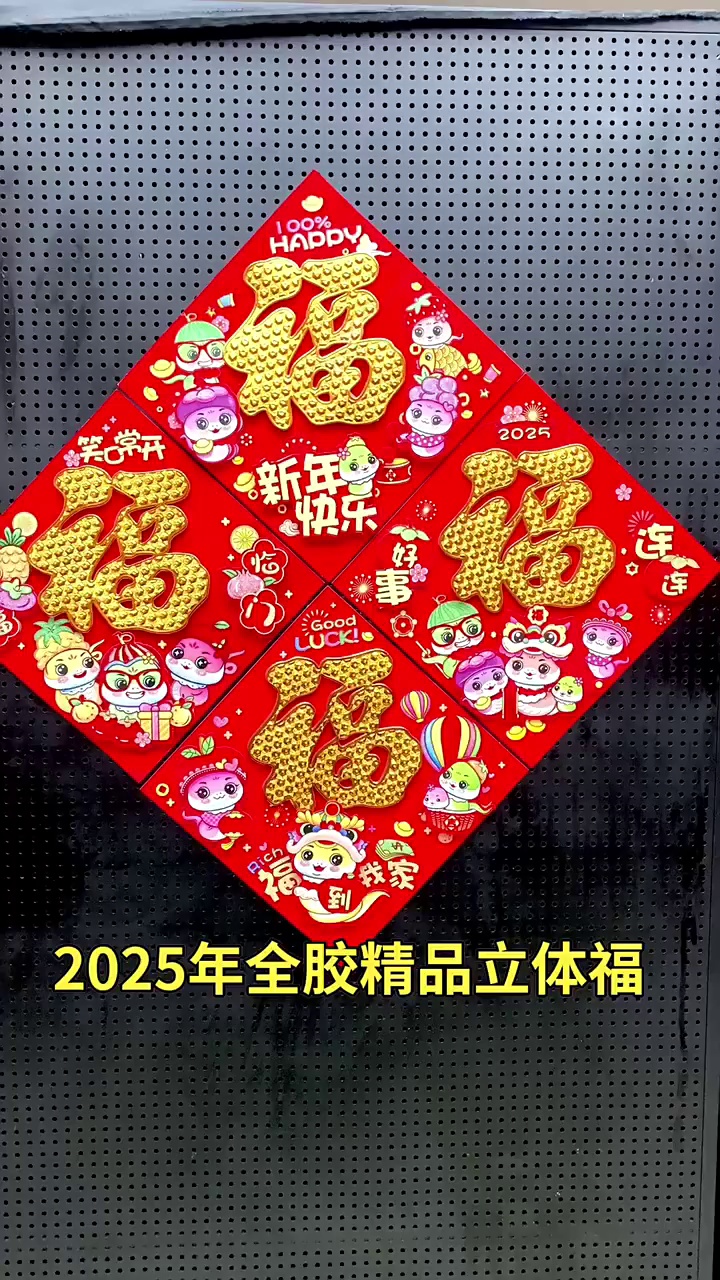 新品上市,新款全胶精品立体福字,40# 50#金福8个款式,60#4个款式,可混搭发货,背面全背胶,底板加厚卡纸植绒烫金,福字植绒加撒粉,配件撒粉烫金,高端大气上档次、实物比图片更有质感