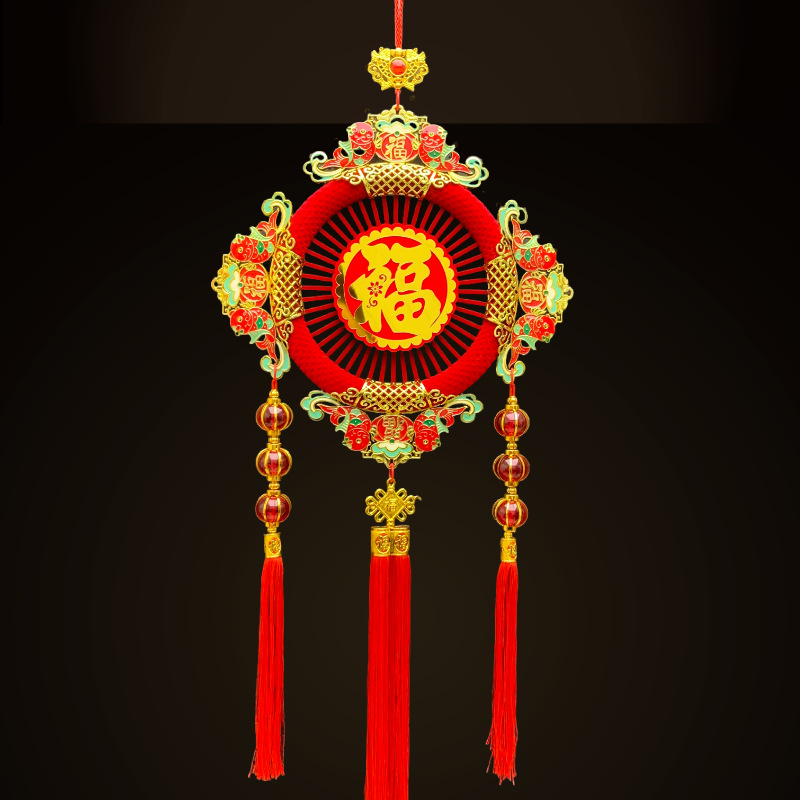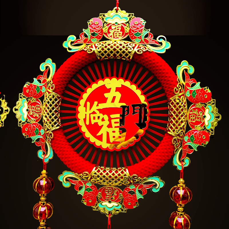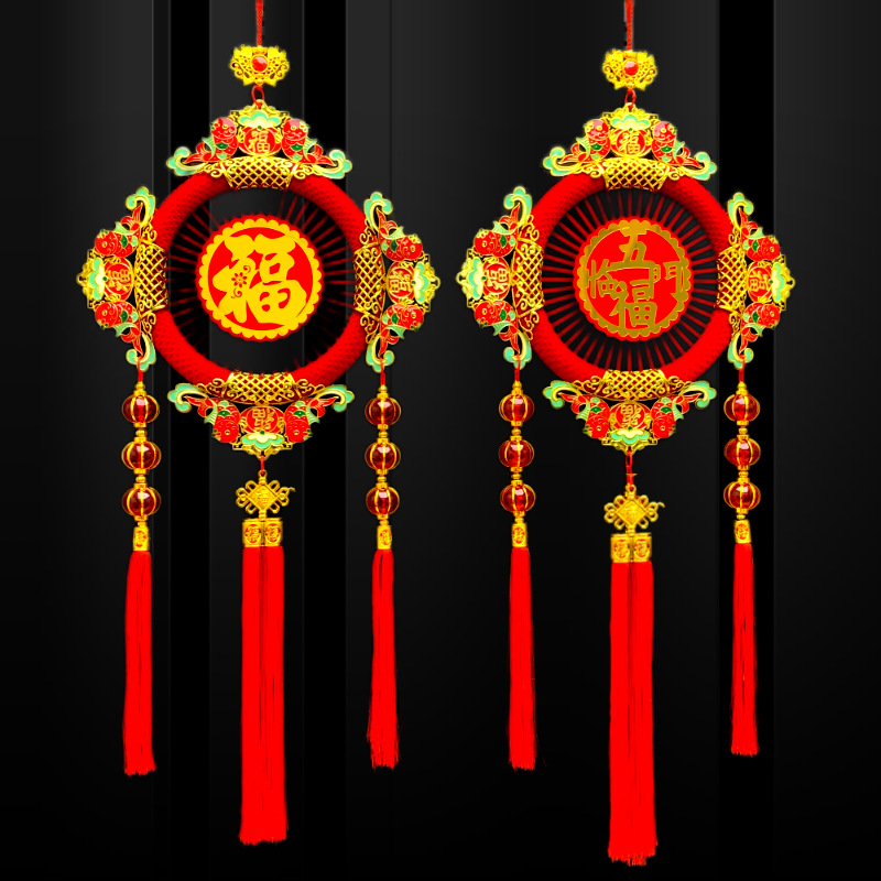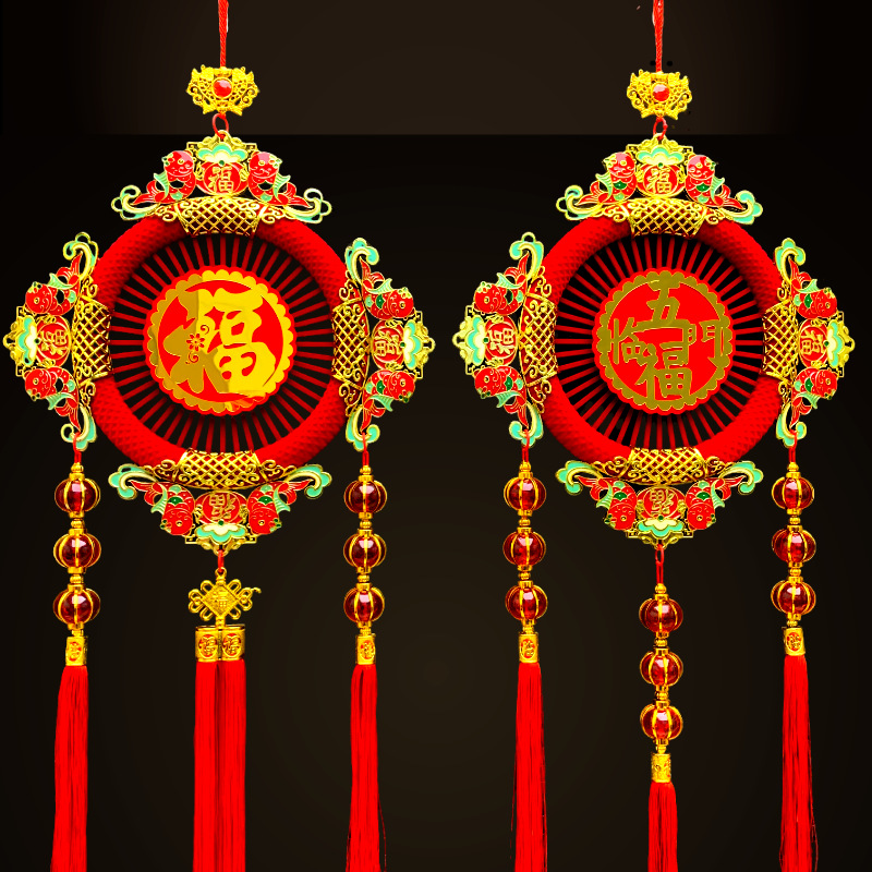新款景泰蓝植绒挂件网红直播精美手提礼盒五福临门福字挂件