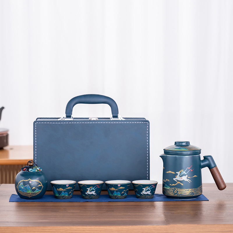 yi lu has you blue glaze a pot of 4 cups tea caddy [leather bag] large teapot(一鹿有你霁蓝一壶4杯茶罐【皮包】大号茶壶) USD $13.31 7266 piece available