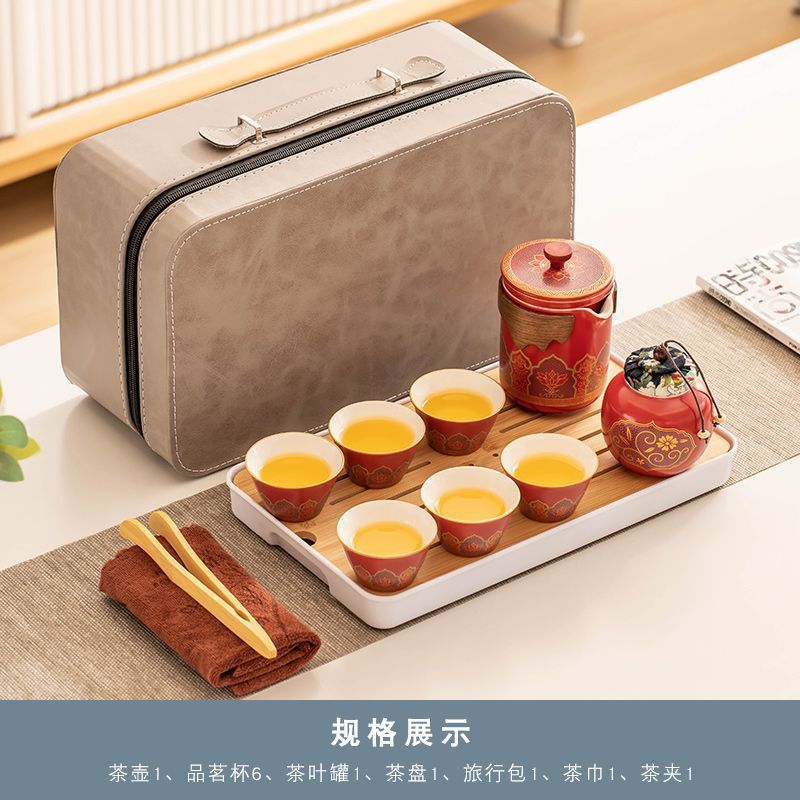 rose red ancient tea one pot fills three cups + yellow leather bag(玫红古茗一壶三杯+黄皮包) USD $5.12 7333 piece available
