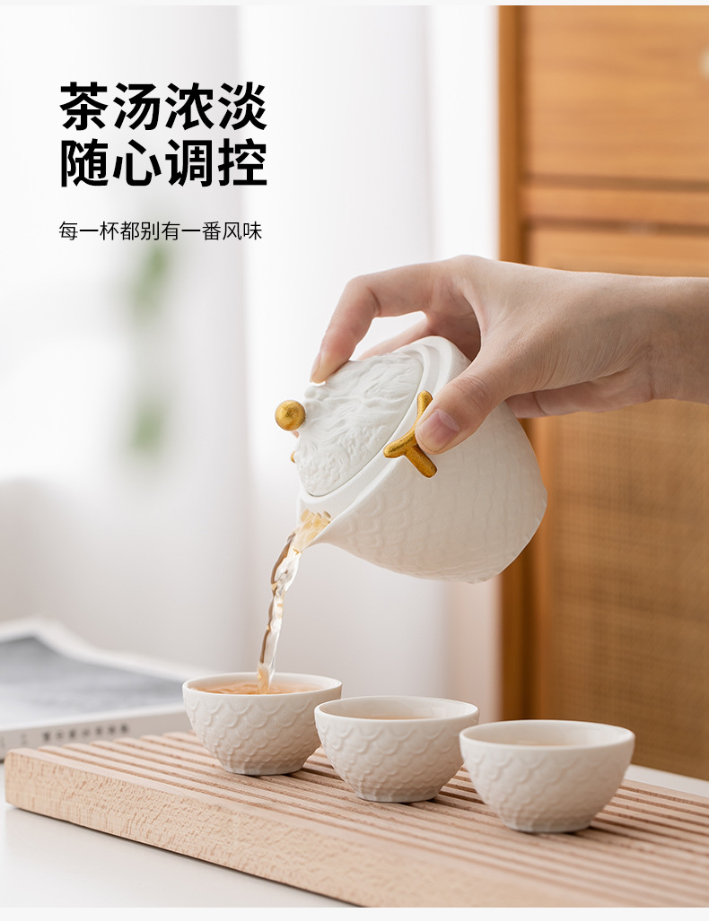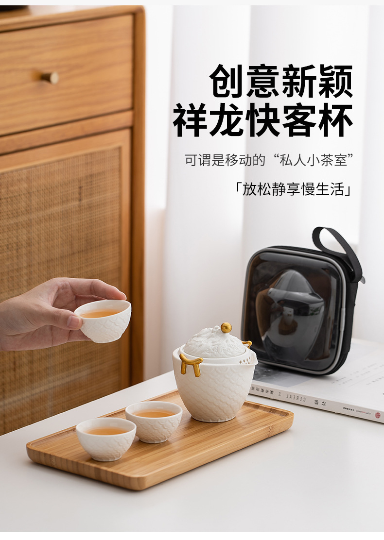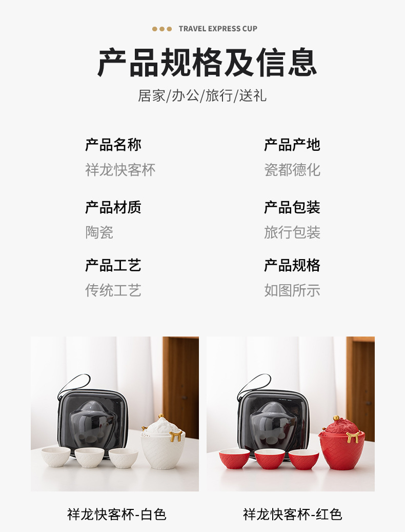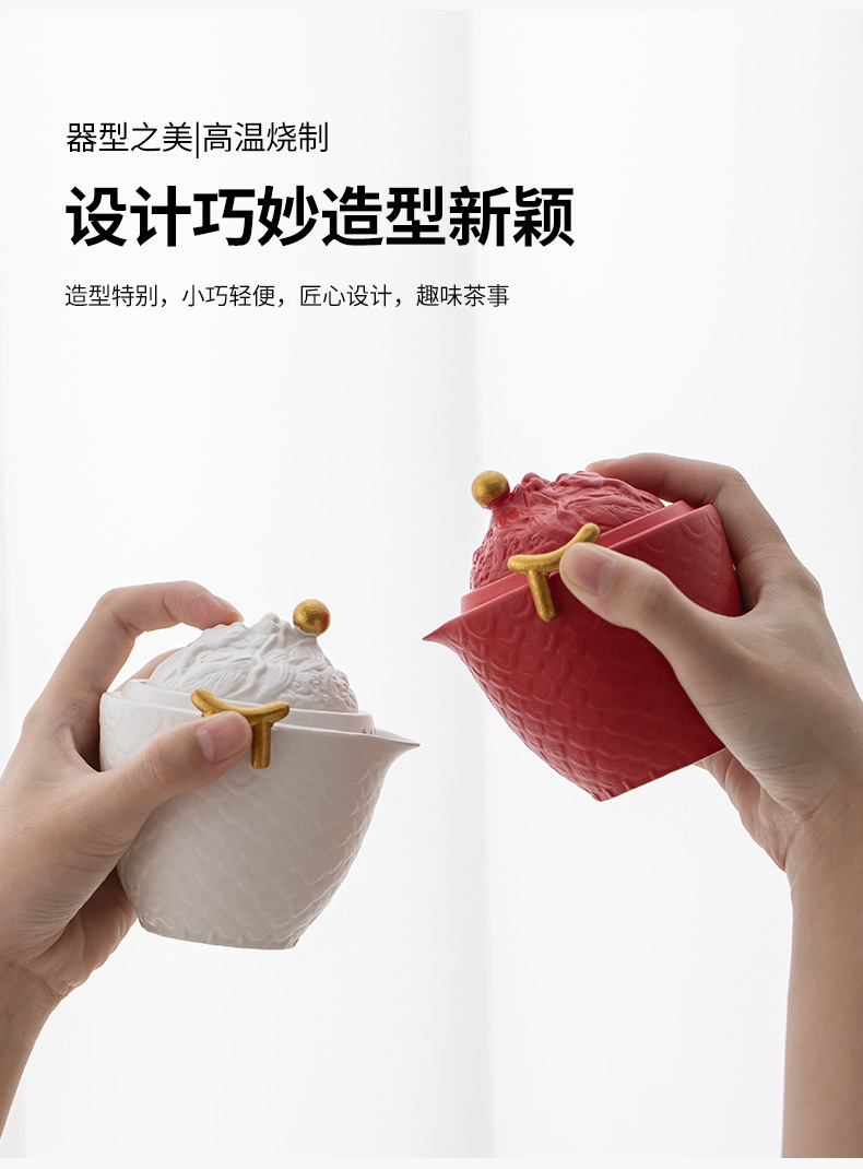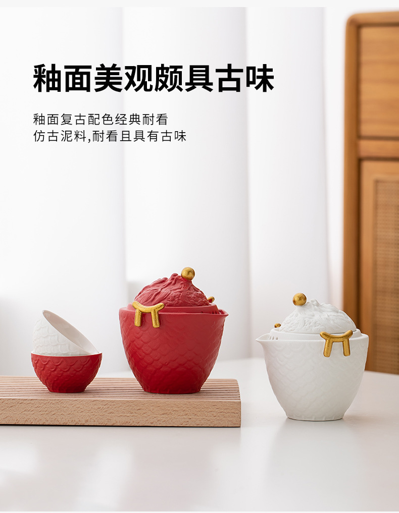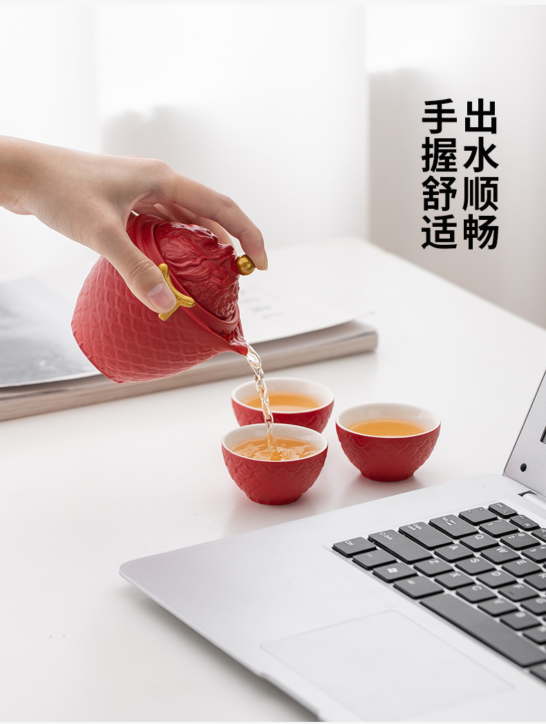 龙年红色旅行茶具套装陶瓷快客杯便携一壶三杯 公司商务礼品logo