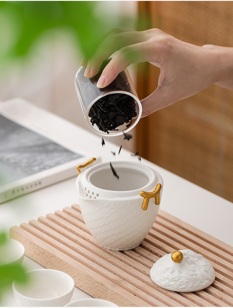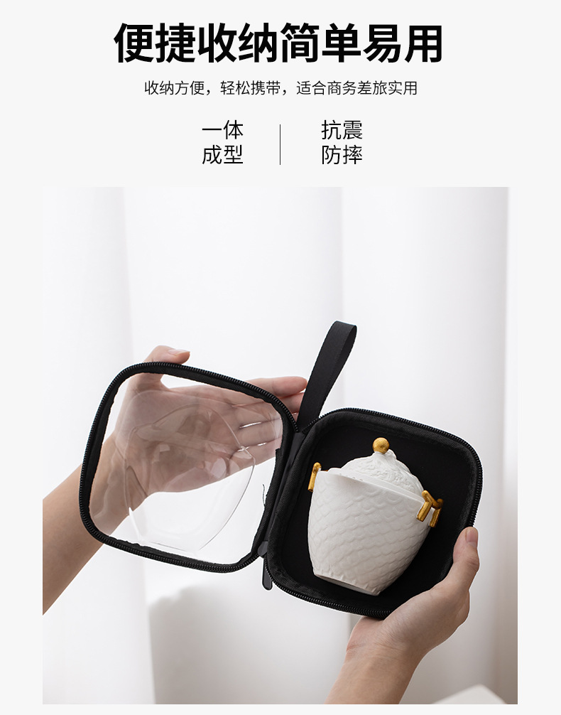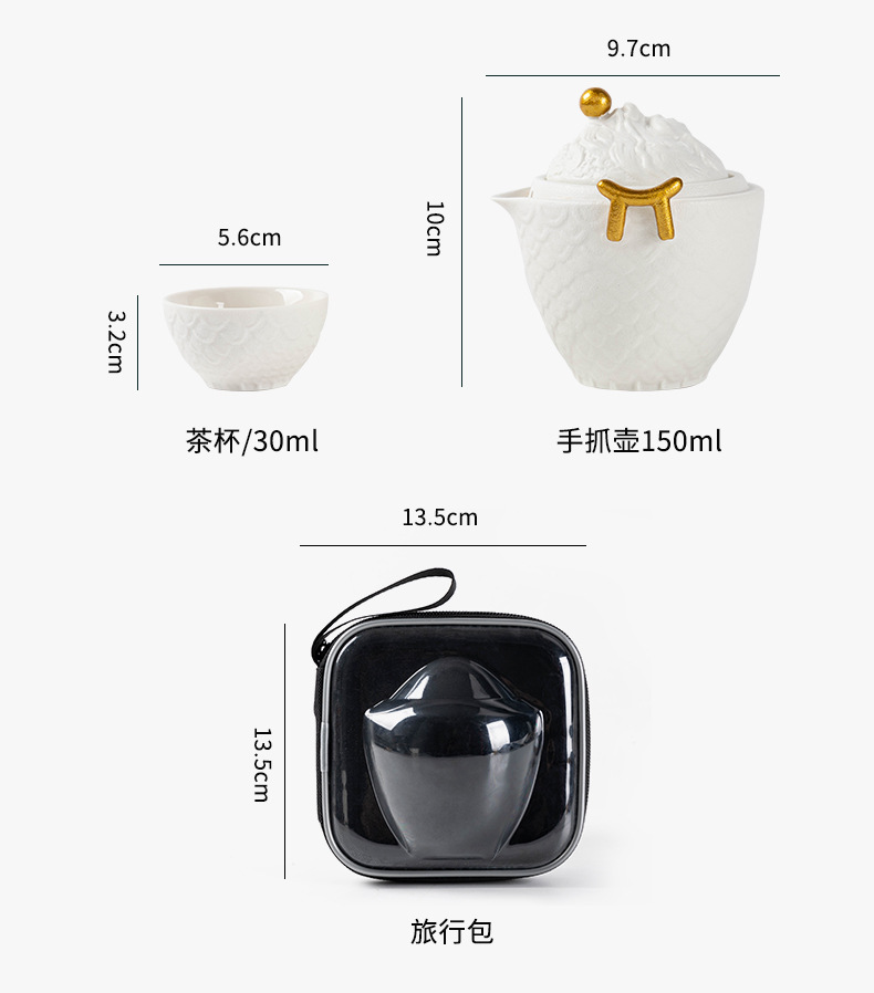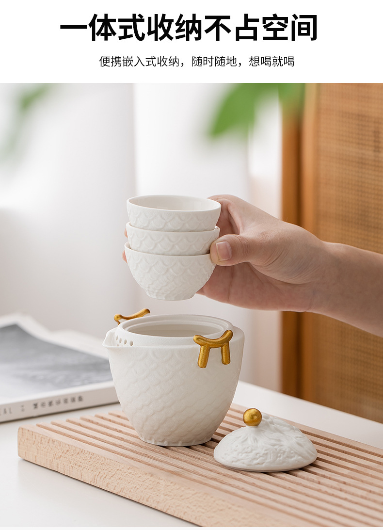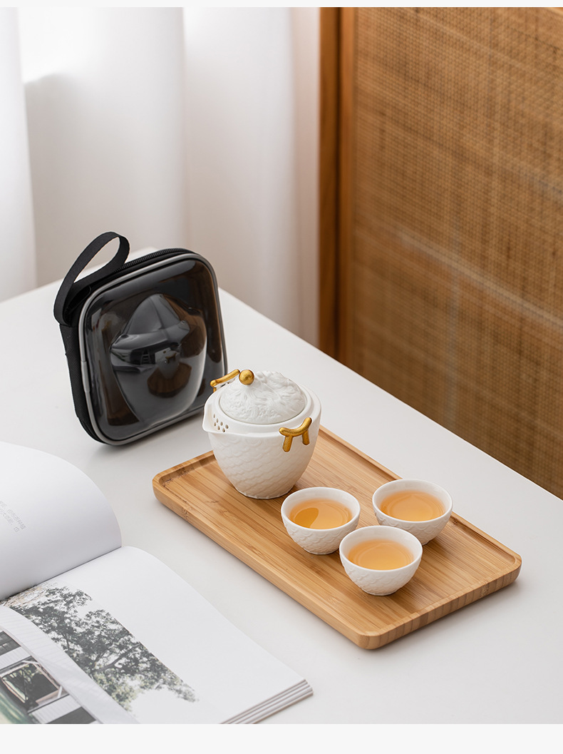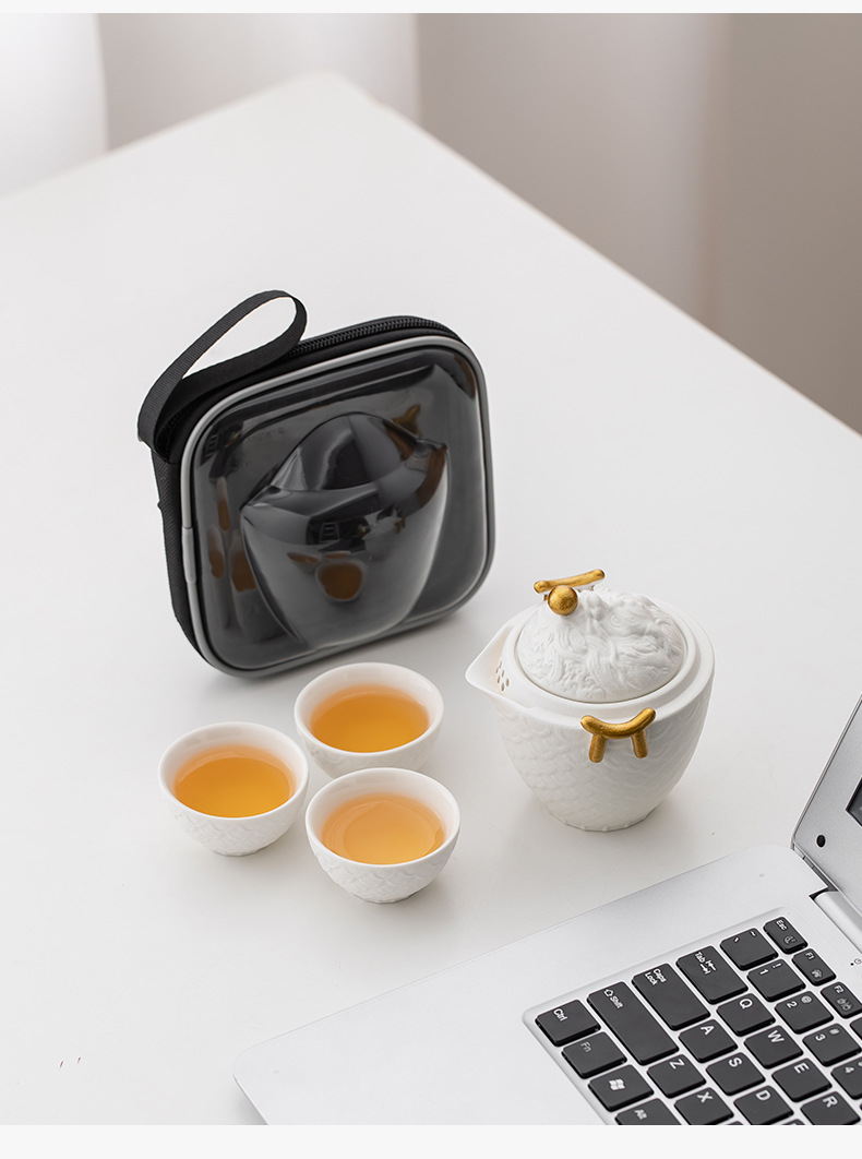 龙年红色旅行茶具套装陶瓷快客杯便携一壶三杯 公司商务礼品logo