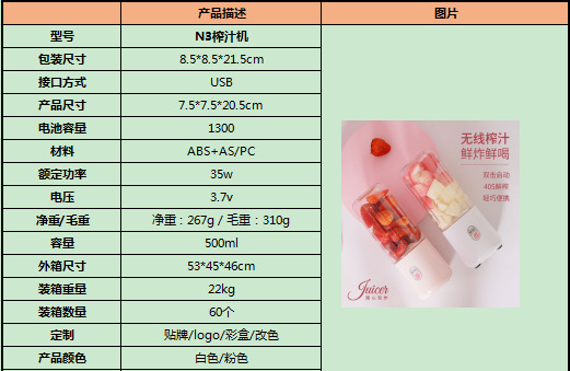 迷你榨汁杯500ml家用usb充电果汁机小型便携式榨汁机跨境礼品代发