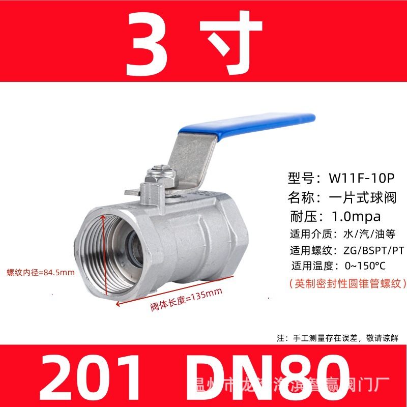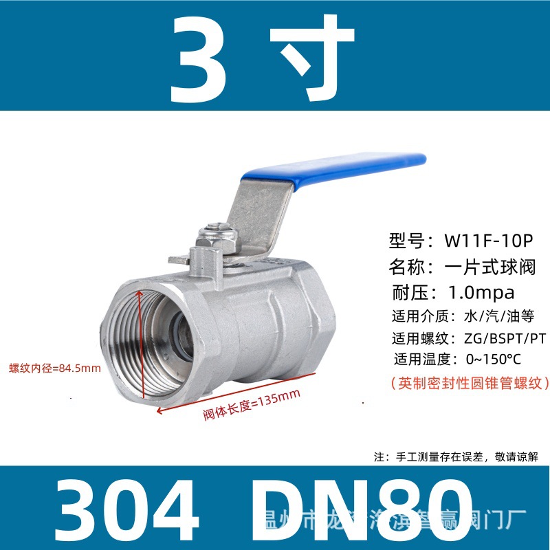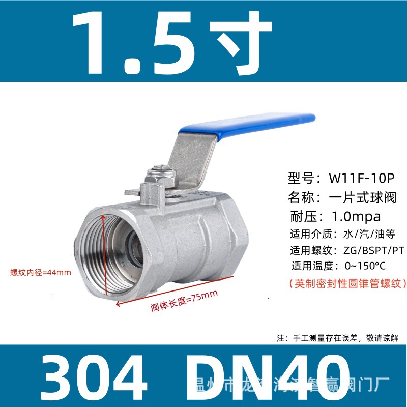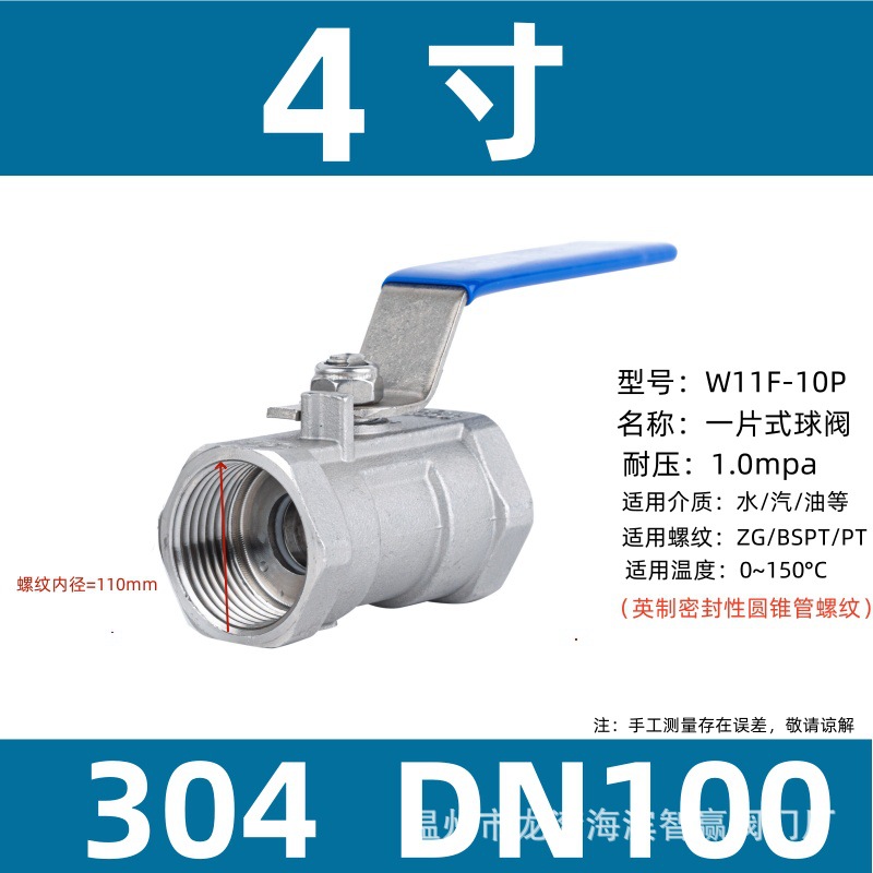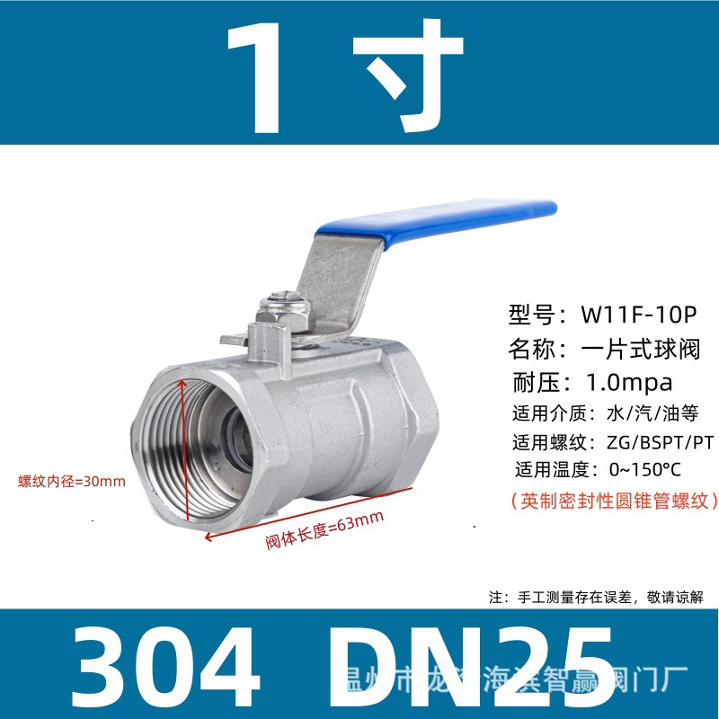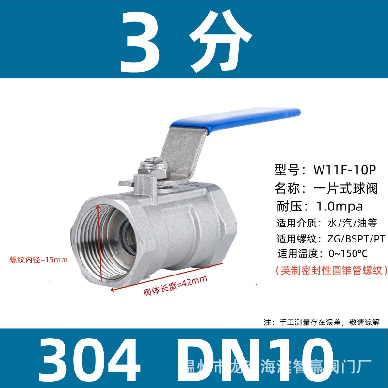 不锈钢球阀/304一片式球阀/丝扣内螺纹/阀门厂家直销4分6分1寸