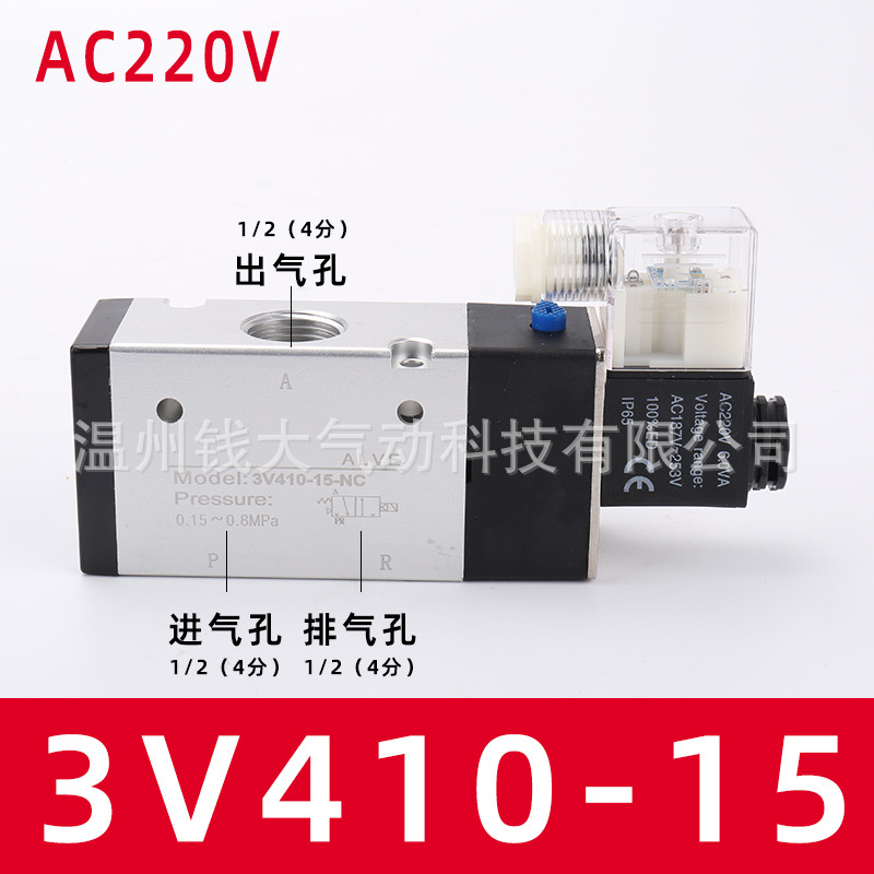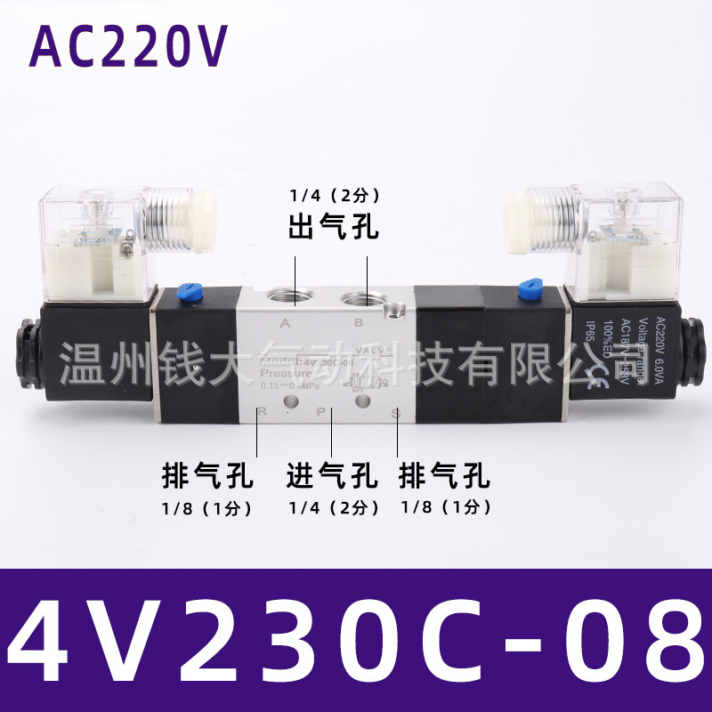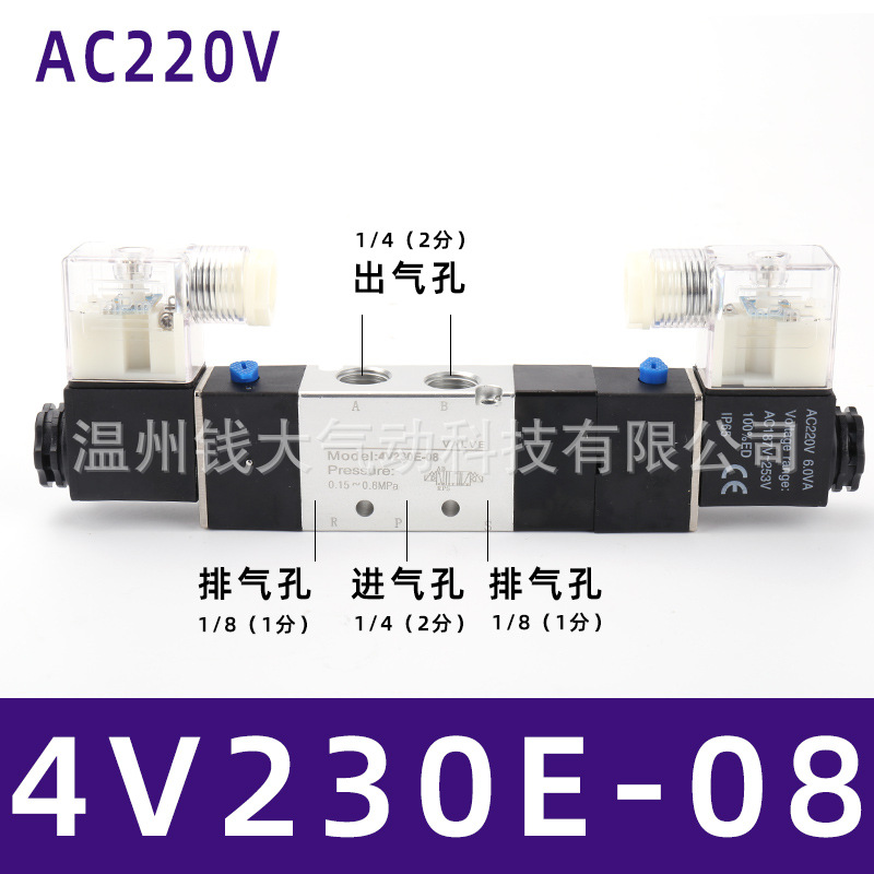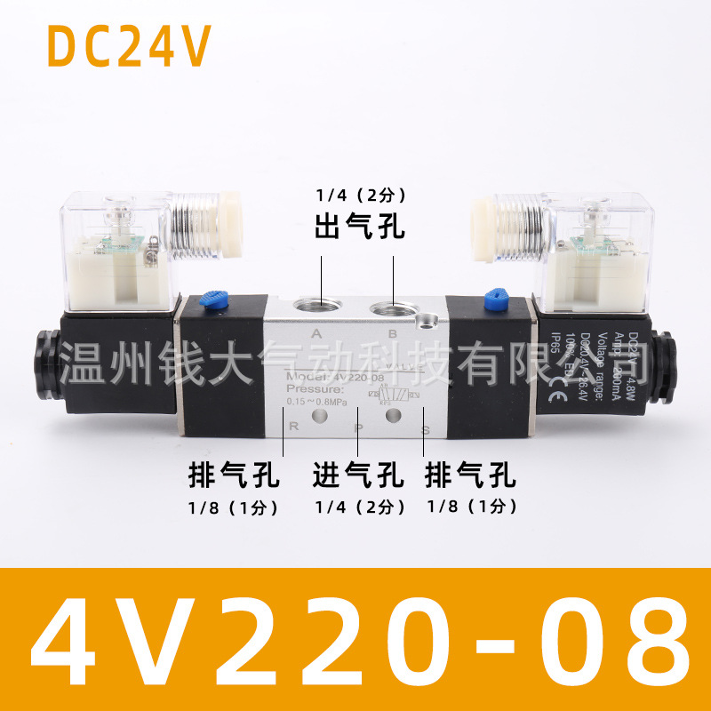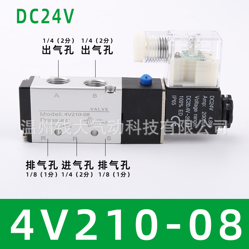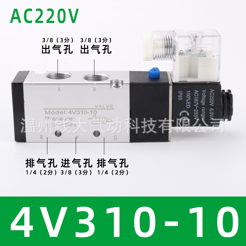气动电磁阀4V210-08 二位五通气缸换向阀220V电磁控制阀4V310-10