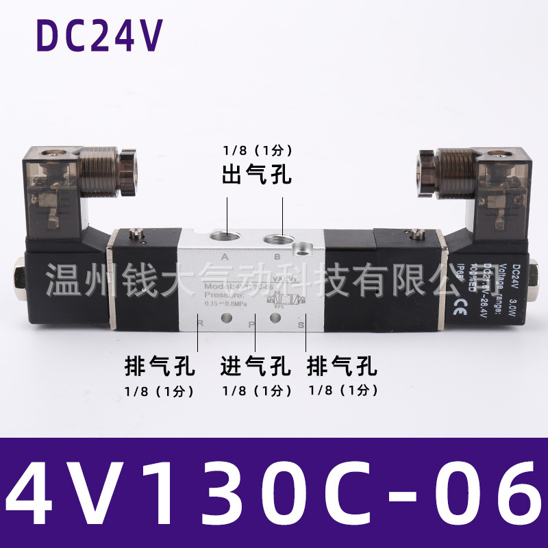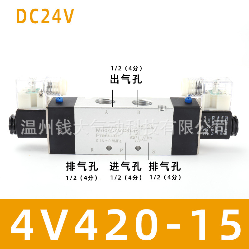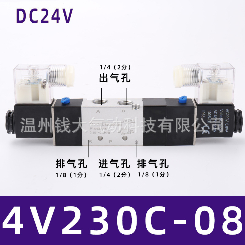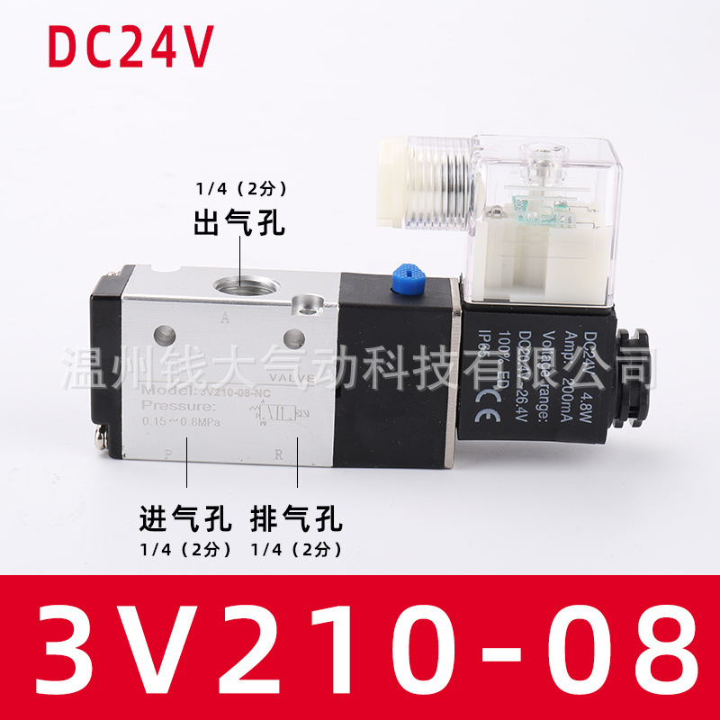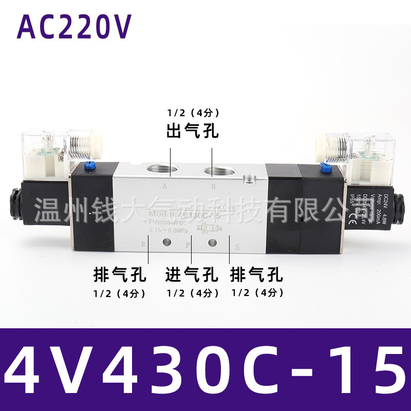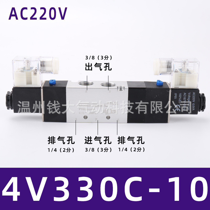 气动电磁阀4V210-08 二位五通气缸换向阀220V电磁控制阀4V310-10
