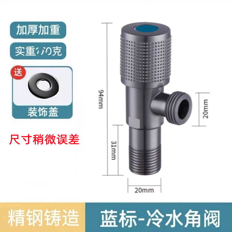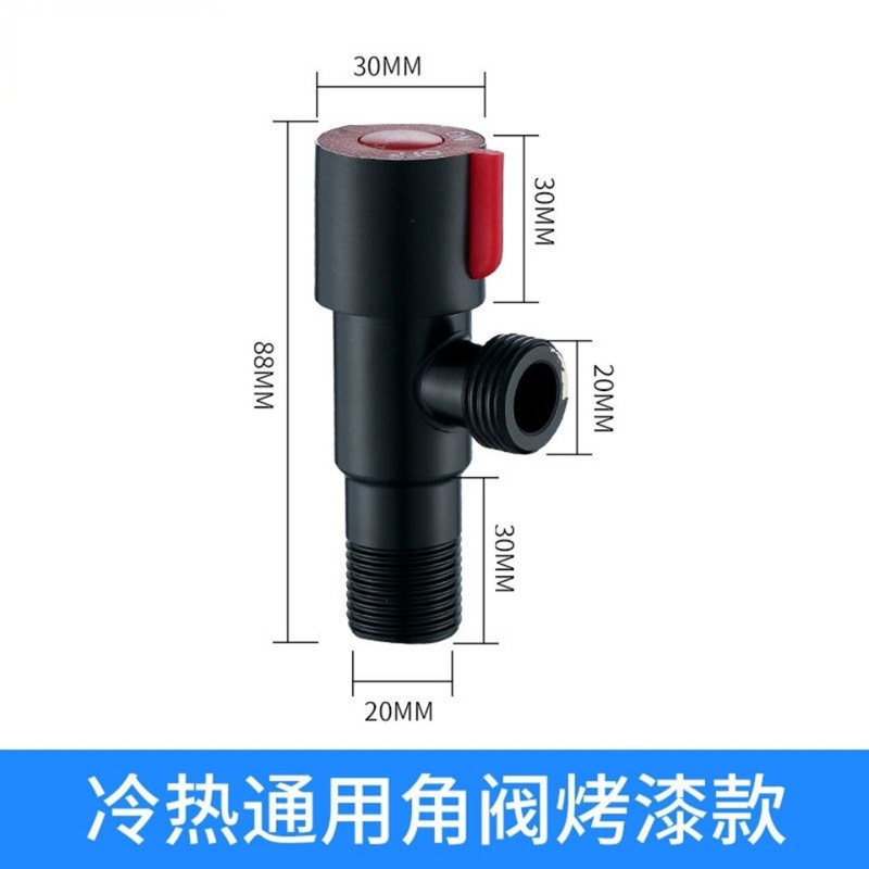 全铜三角阀热水器冷热水止水阀一进二出卫生间家用黑色加长款角阀
