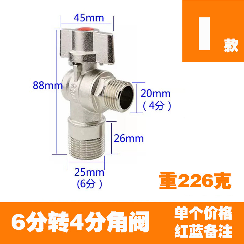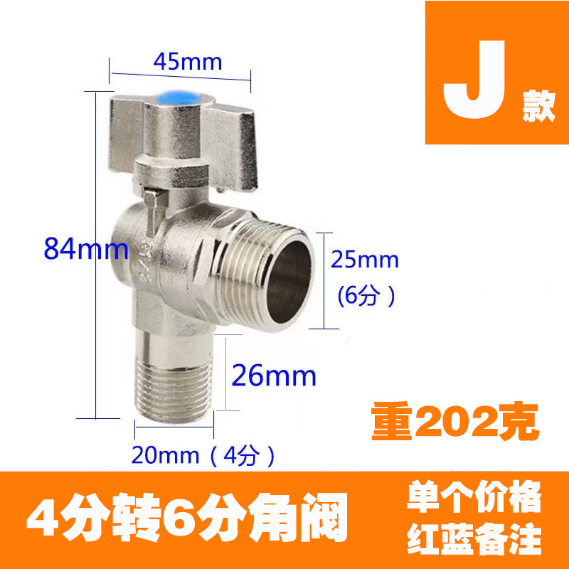 三角阀纯铜球阀大流量四4分冷热水通用6分热水器全通径球芯心角阀