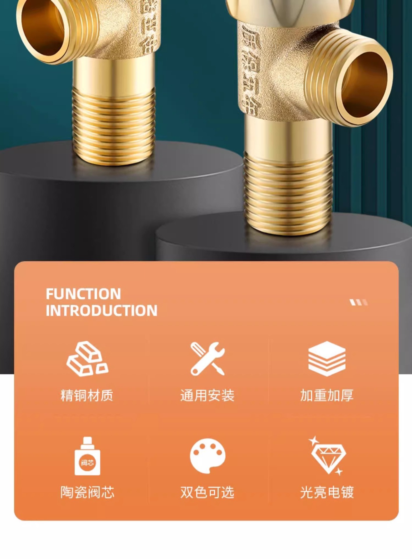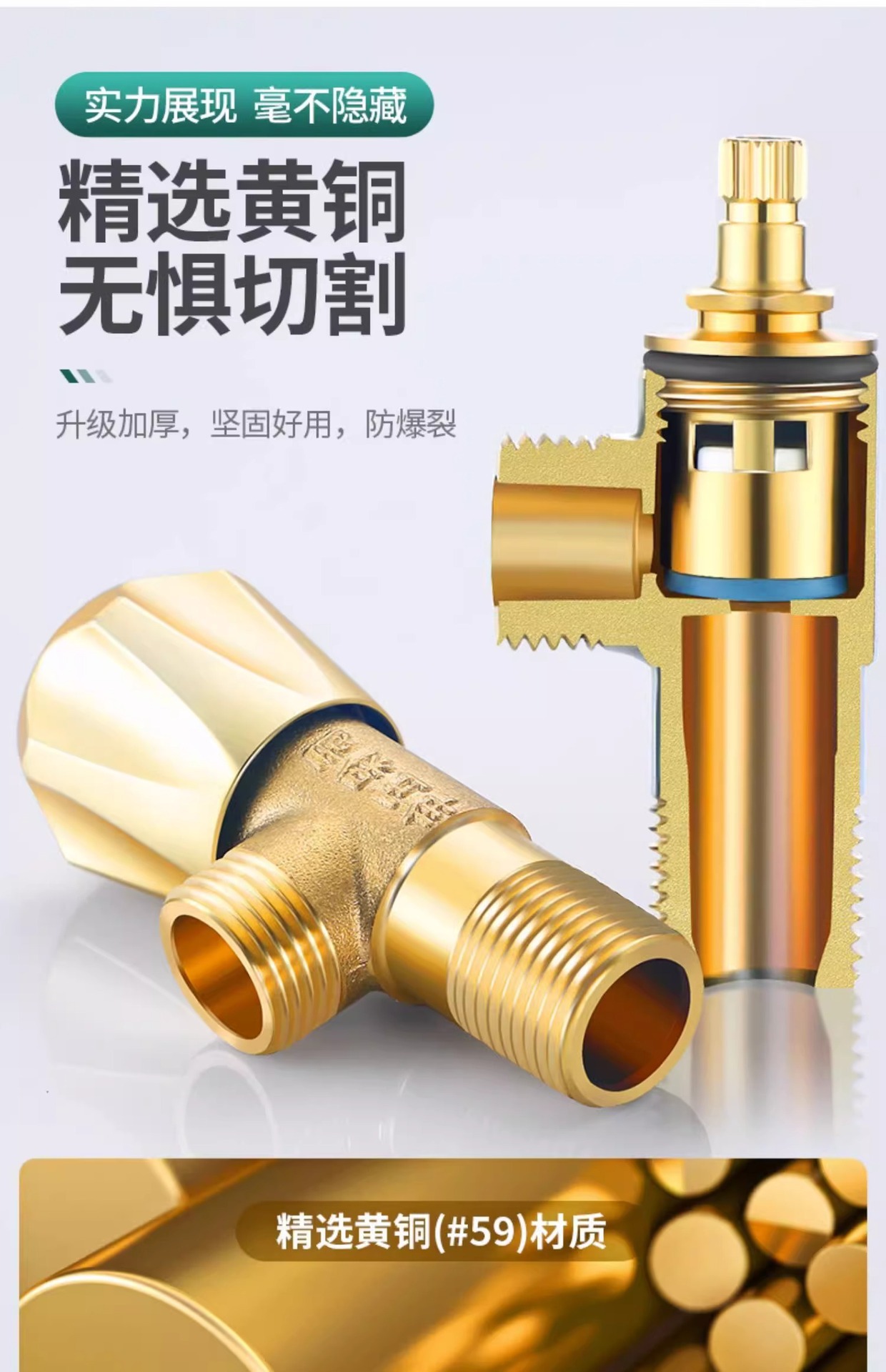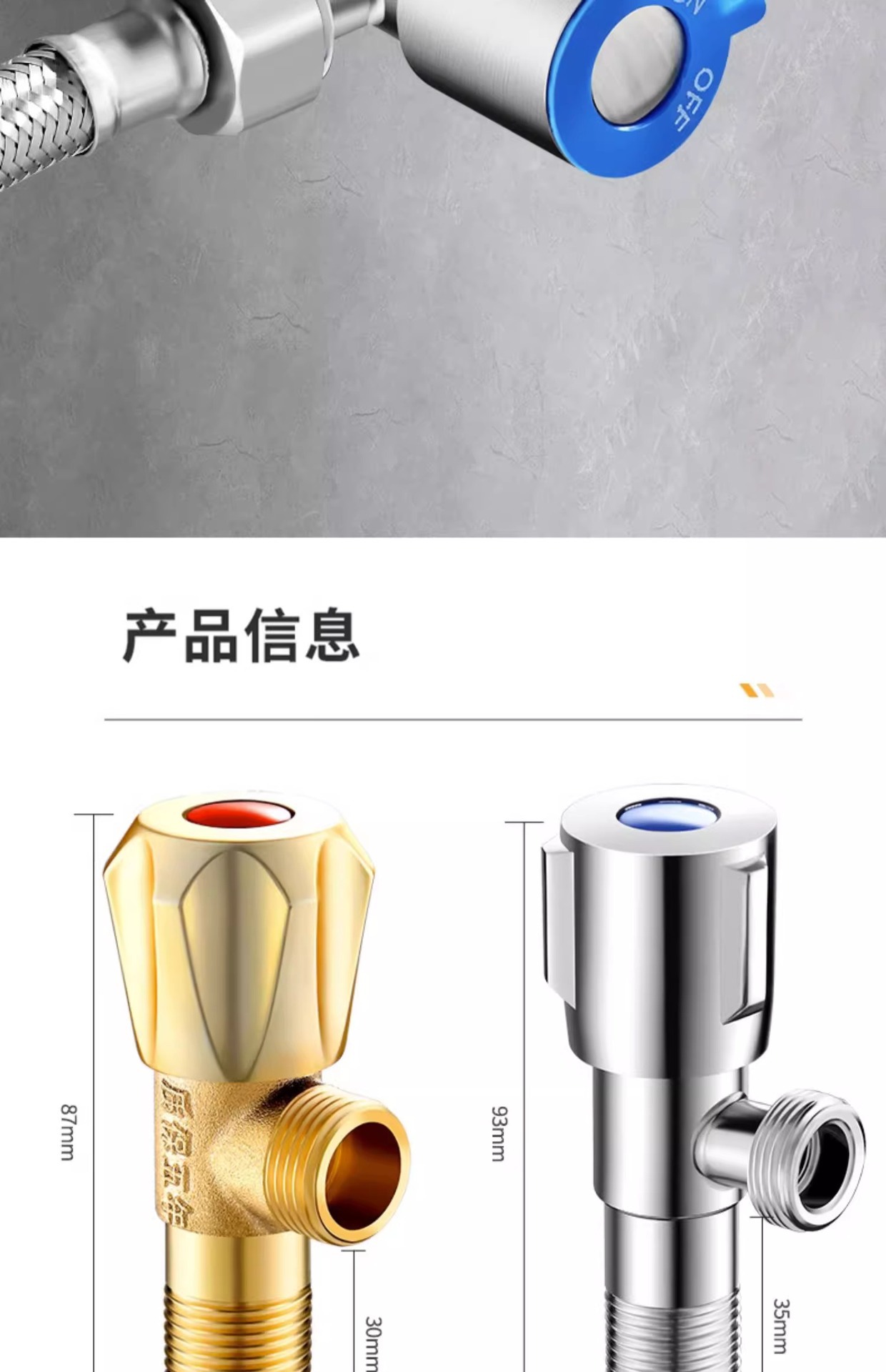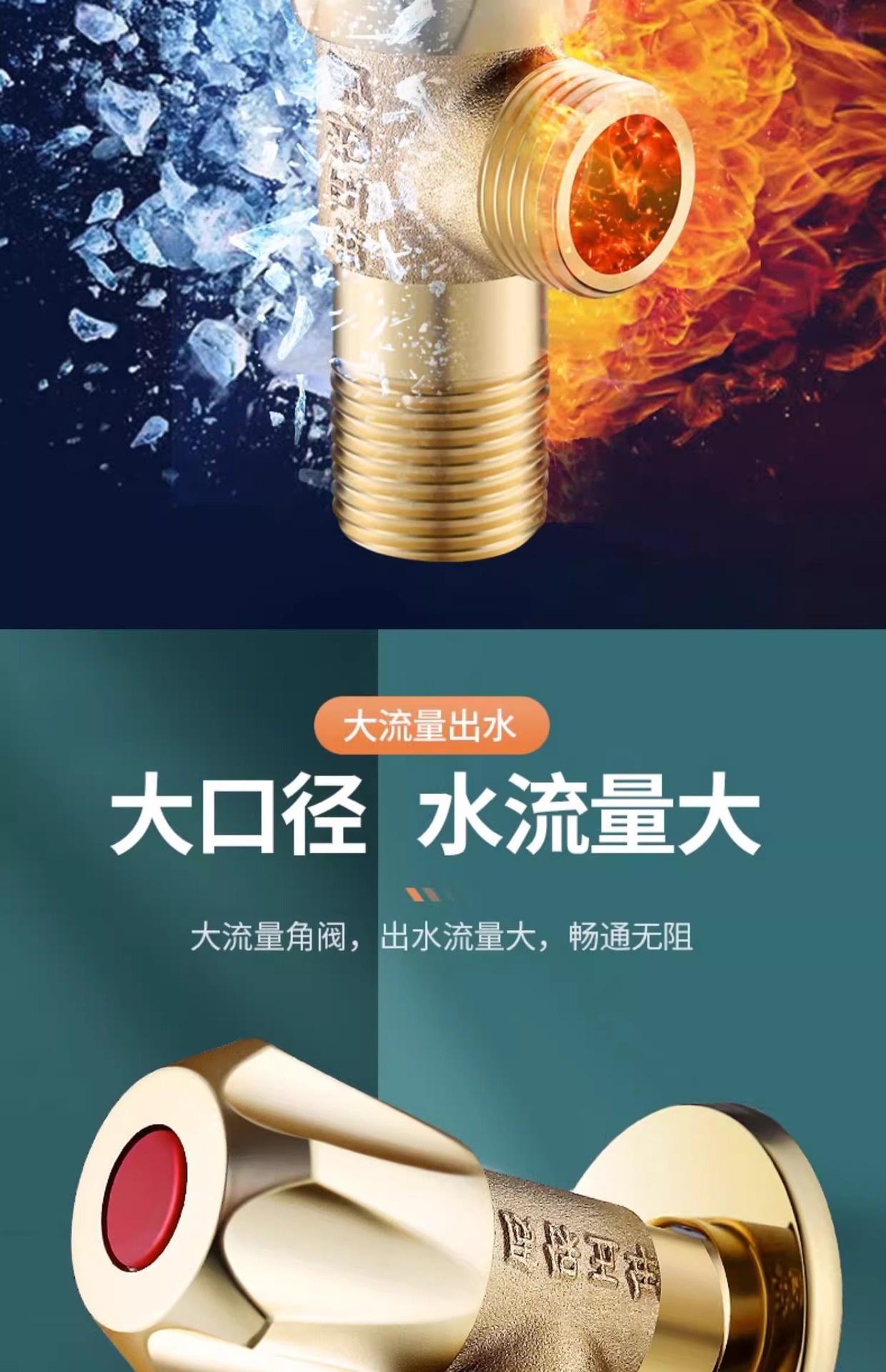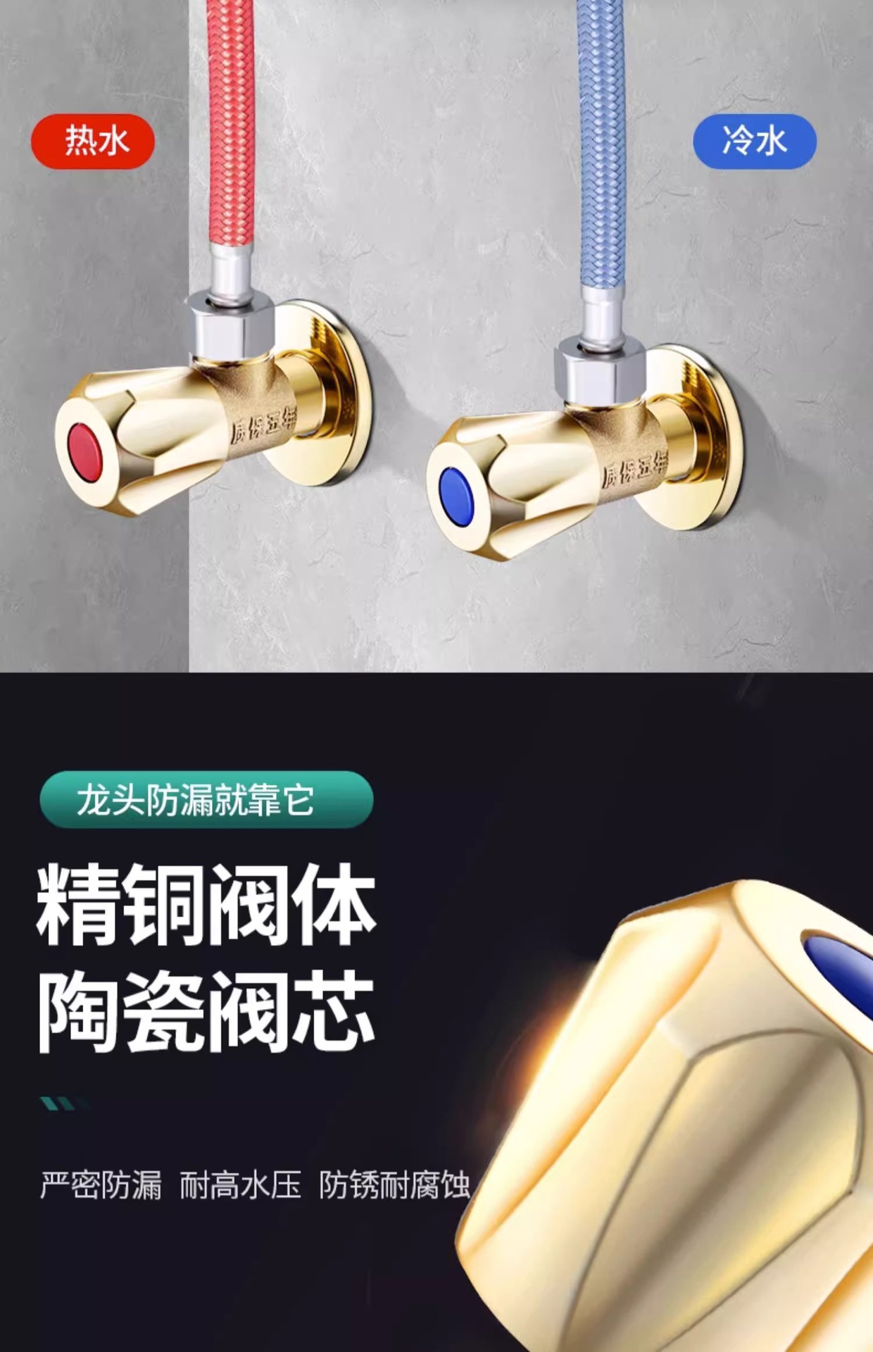 厂家批发全铜三角阀加厚角阀 家用热水器马桶通用冷热开关4分角阀