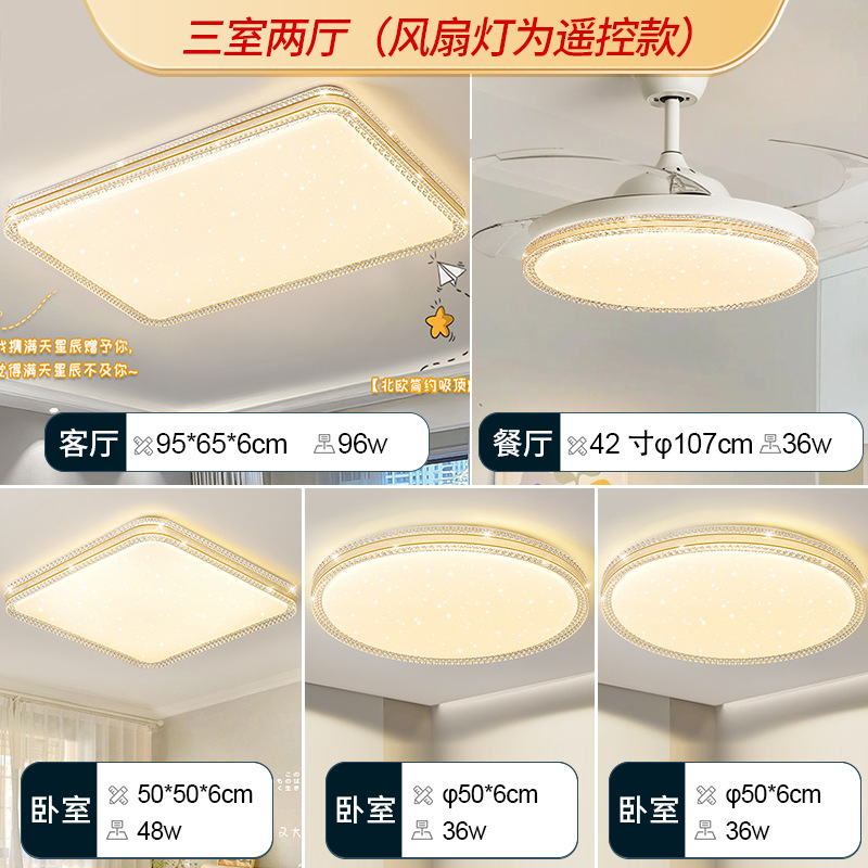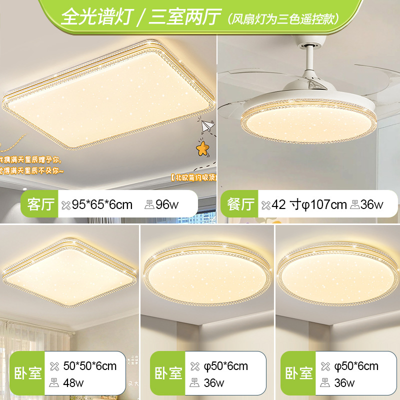 2024年新款灯具卧室客厅灯现代简约大气全光谱护眼吸顶灯全屋套餐