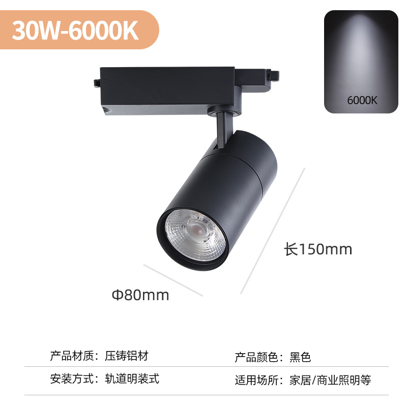 led轨道灯服装店防眩射灯20w商用背景墙橱窗30w吊顶明装cob聚光灯
