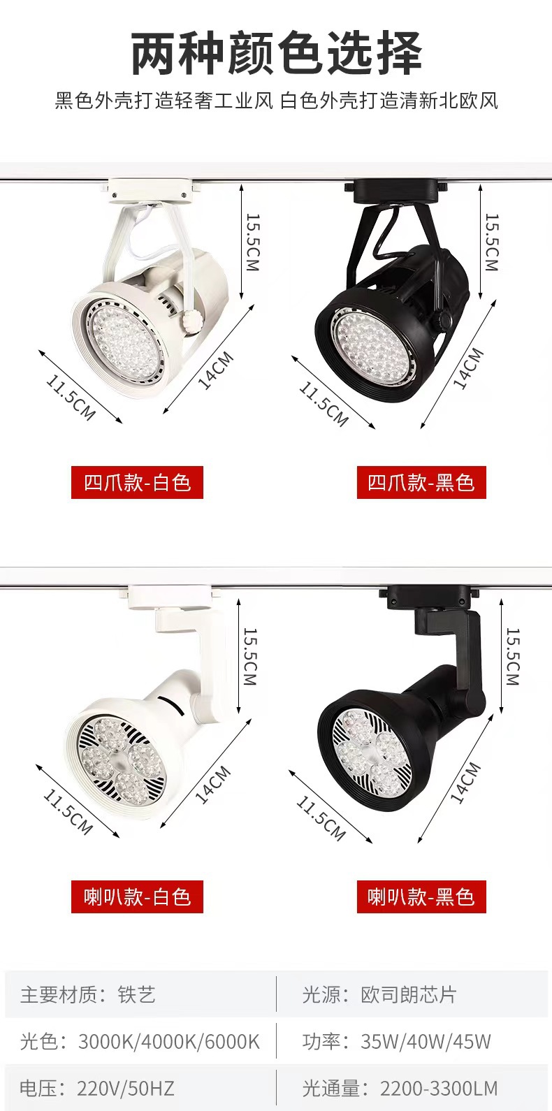 商用led轨道射灯节能餐厅展厅服装店补光灯聚光灯par30轨道灯