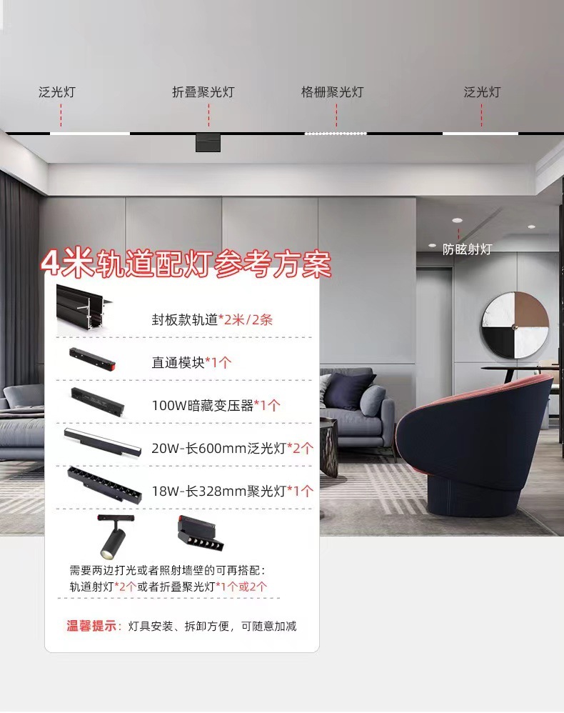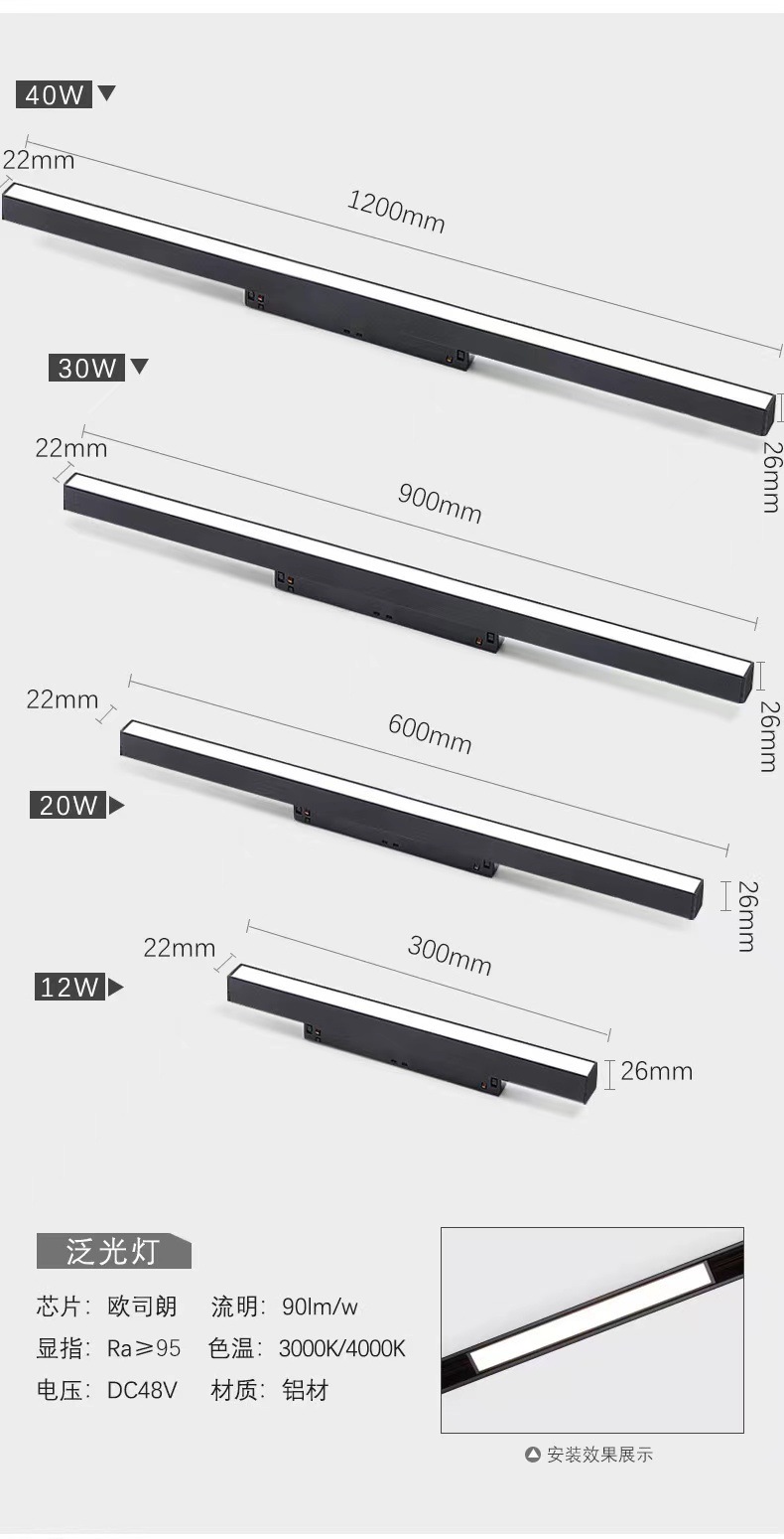 磁吸灯轨道条批发家用客厅明装暗装无主灯泛光灯嵌入式磁吸轨道灯